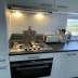 Die komfortable Einbauküche ist mit einem Gasherd (4 Flammen), Dunstabzugshaube mit Beleuchtung, Kombi-Mikrowelle/Backofen, Kühlschrank mit Gefrierfach, Geschirrspüler, Espressomaschine, separater Filterkaffeemaschine (im Schrank) und Toaster ausgestattet. Für Hunde stehen 2 Futter-/Wassernäpfe zur Verfügung. Es gibt 2 Schlafzimmer (insgesamt 4 Betten; 1x Doppelbett und ein Schlafzimmer mit 2 Einzelbetten), ein modernes Badezimmer mit Dusche (Fön vorhanden) und ein separates WC.