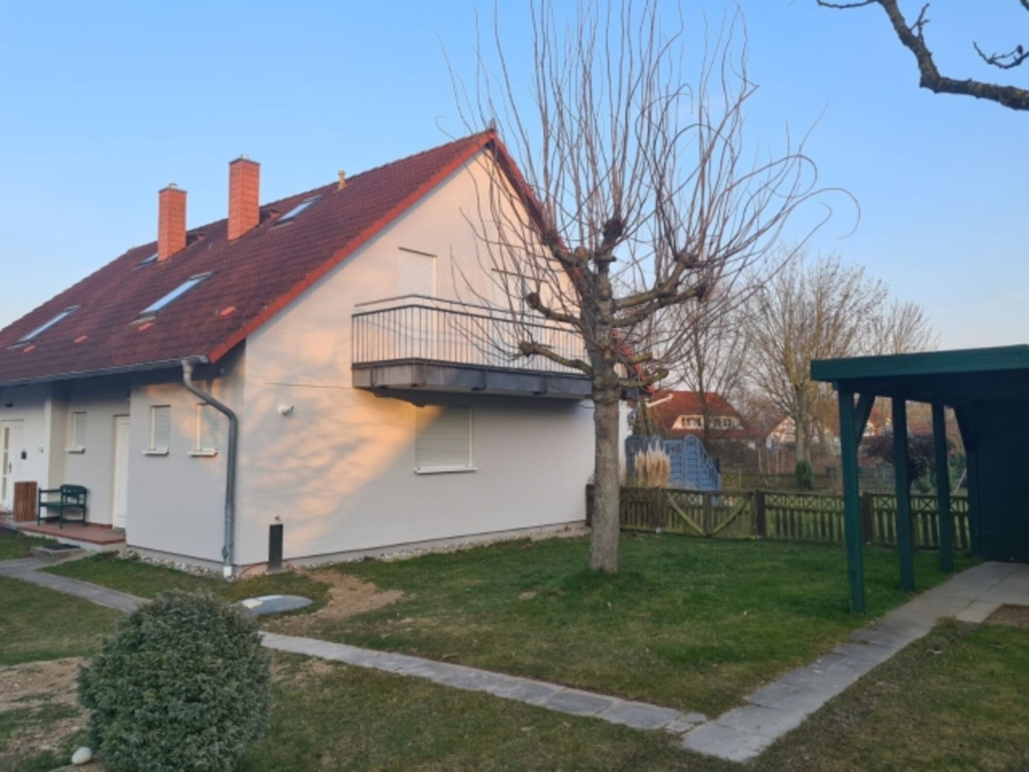 Mit eigenem, eingezäunten Grundstück, Kamin Carport, Grillmöglichkeit und Ladesäule für E-Autos bleibt kaum ein Wunsch offen.