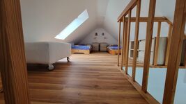 Es stehen drei Schlafzimmer zur Verfügung, auf einer Galerie (Stehhöhe ca. 150cm ), die von einem Schlafzimmer zu erreichen ist, befinden sich drei weitere Betten.