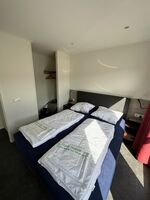 Hauptschlafzimmer mit Doppelbett (160 × 200 cm), großem Kleiderschrank und direktem Zugang zum eigenen Bad Zweites Schlafzimmer mit zwei Einzelbetten - ideal für Kinder. Das Badezimmer ist mit einer bodentiefen Dusche und einem WC ausgestattet. Für zusätzlichen Komfort sorgt ein separates WC.