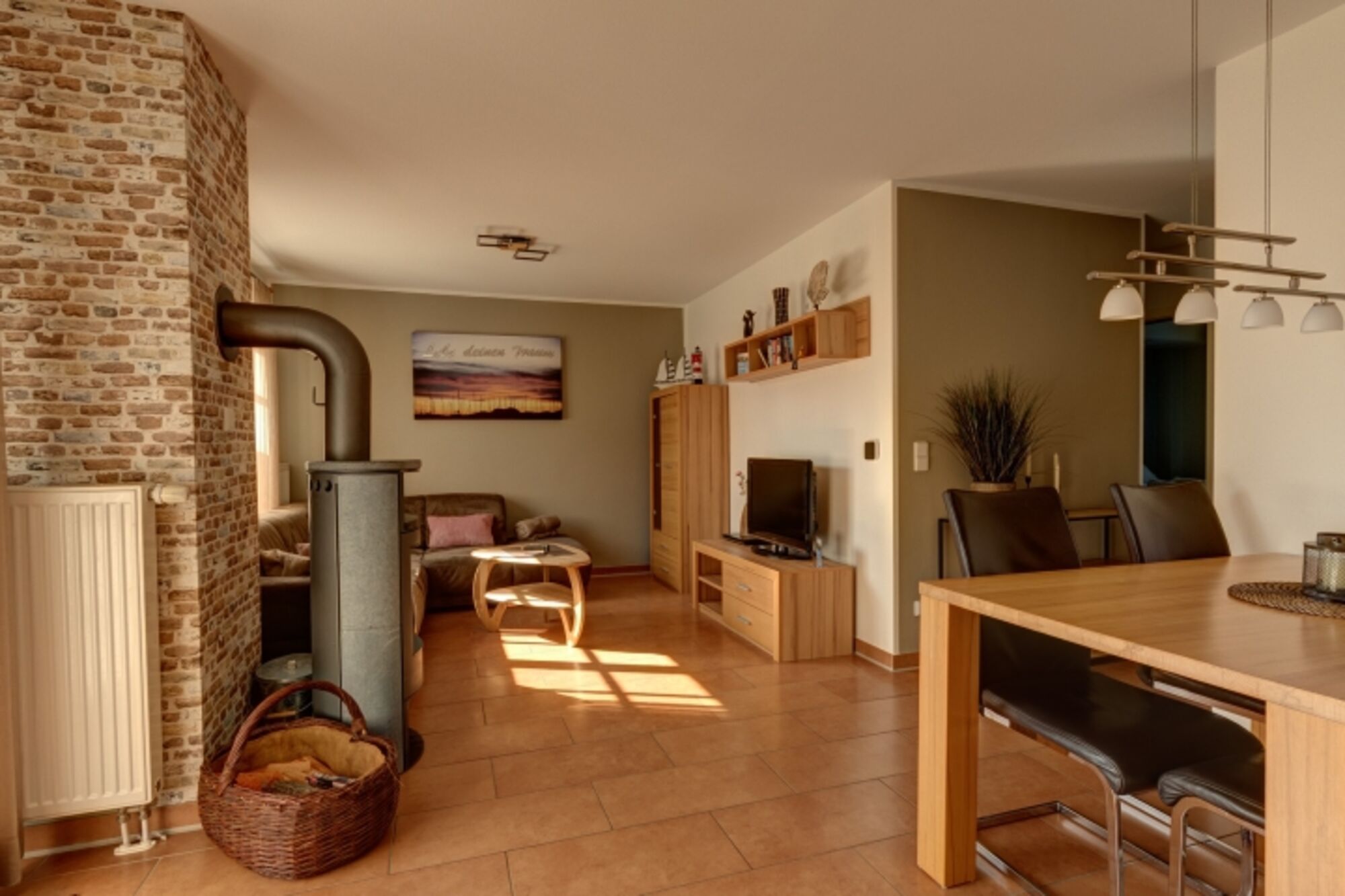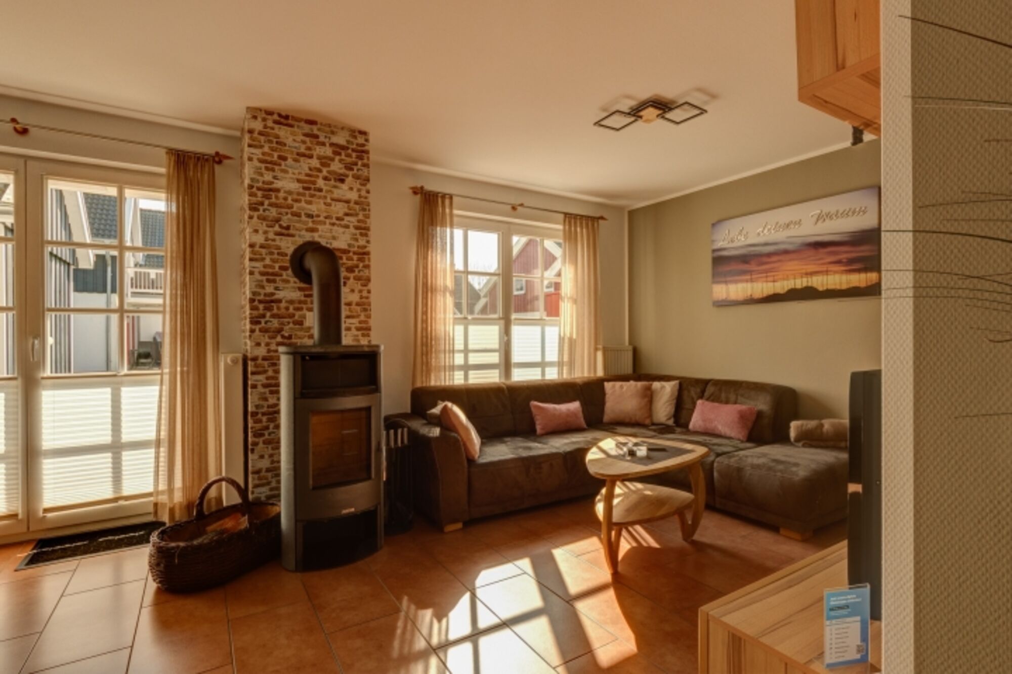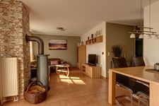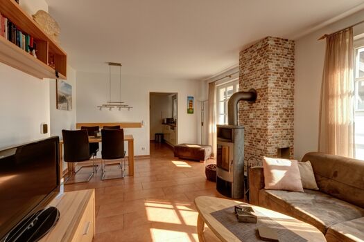 Bei gutem Wetter können Sie auf der windgeschützten Holzterrasse entspannen, an kälteren Tagen sorgt die nagelneue Infrarotkabine oder im gemütlichen Wohnbereich ein Kaminofen für wohlige Wärme. Ein Babyreisebett, ein Kinderhochstuhl, eine Spielesammlung und Bücher stehen für Sie in der Wohnung bereit.