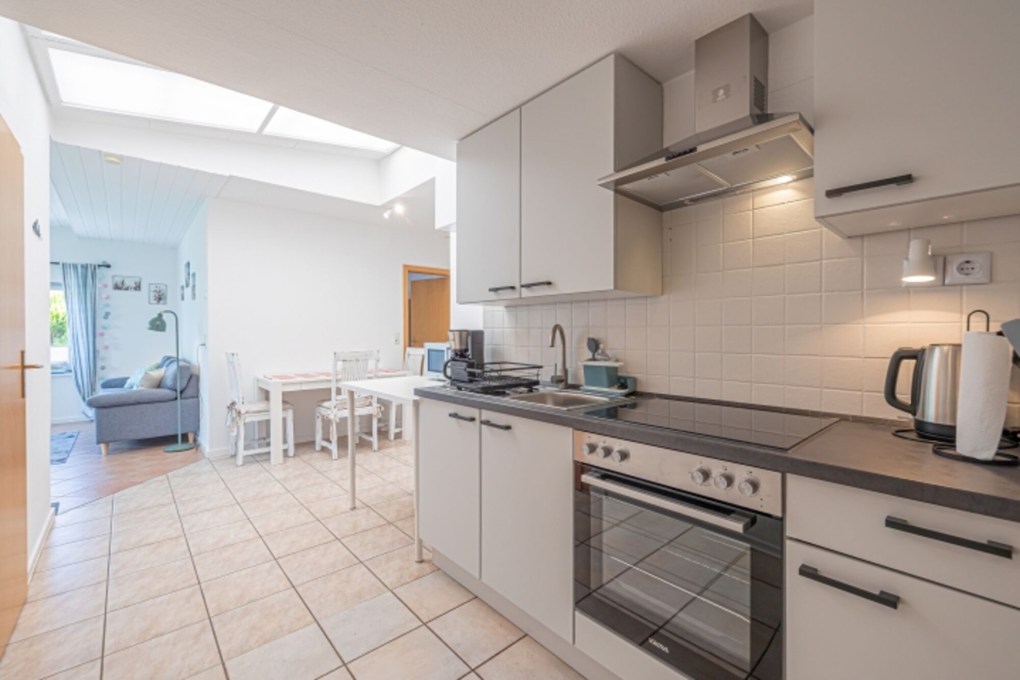 4-Platten Herd, Cerankochfeld, Induktionsherd, Dunstabzugshaube, Kühlschrank mit Gefrierfach, Mixer, Korkenzieher / Flaschenöffner, Gewürze (Salz, Pfeffer, Zucker), Essplatz in der Küche