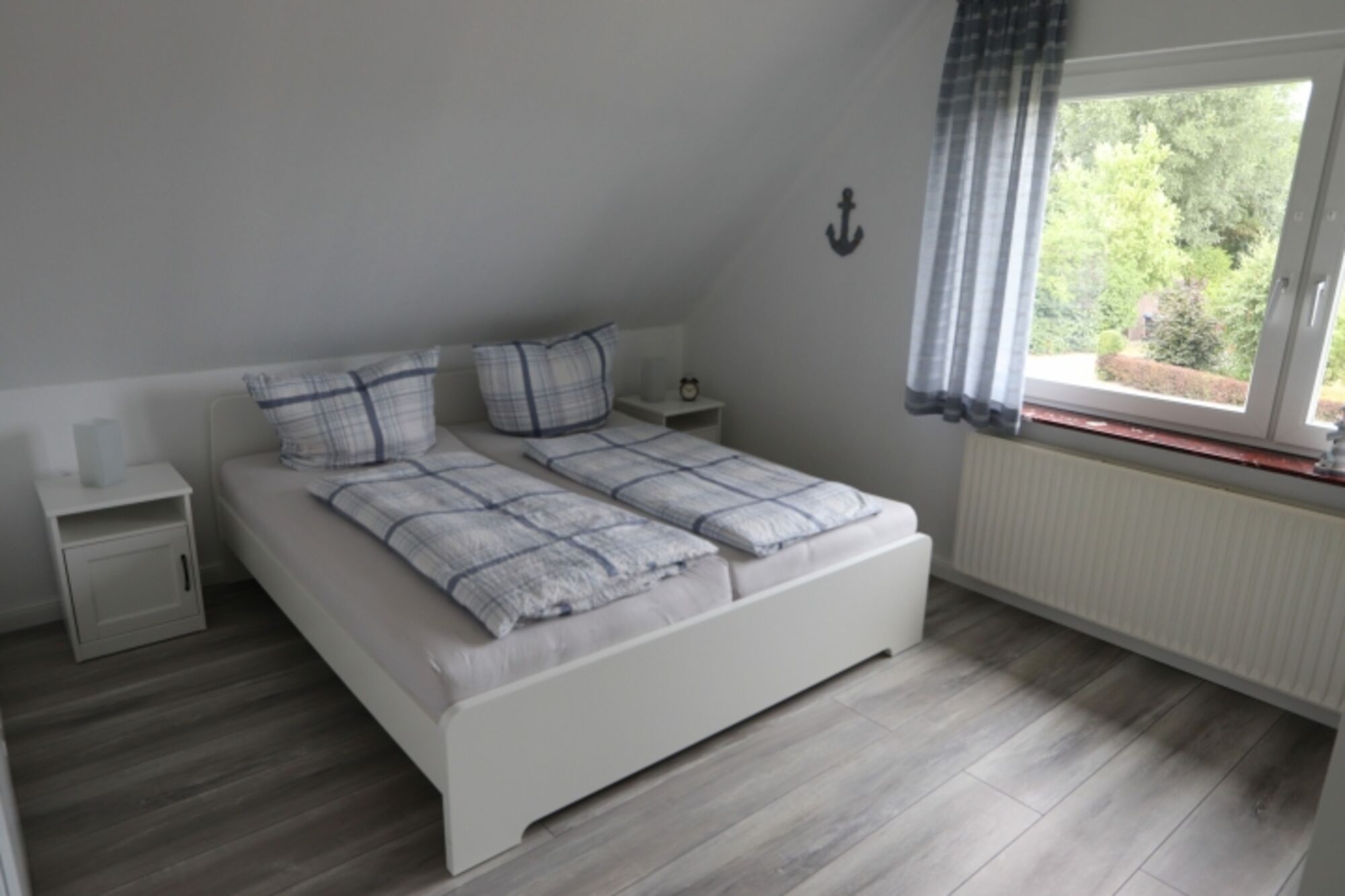 Der Boden in der gesamten Ferienwohnung ist mit einem pflegeleichten, rustikalen Laminatboden ausgestattet. Dies sorgt für optimale Sauberkeit.