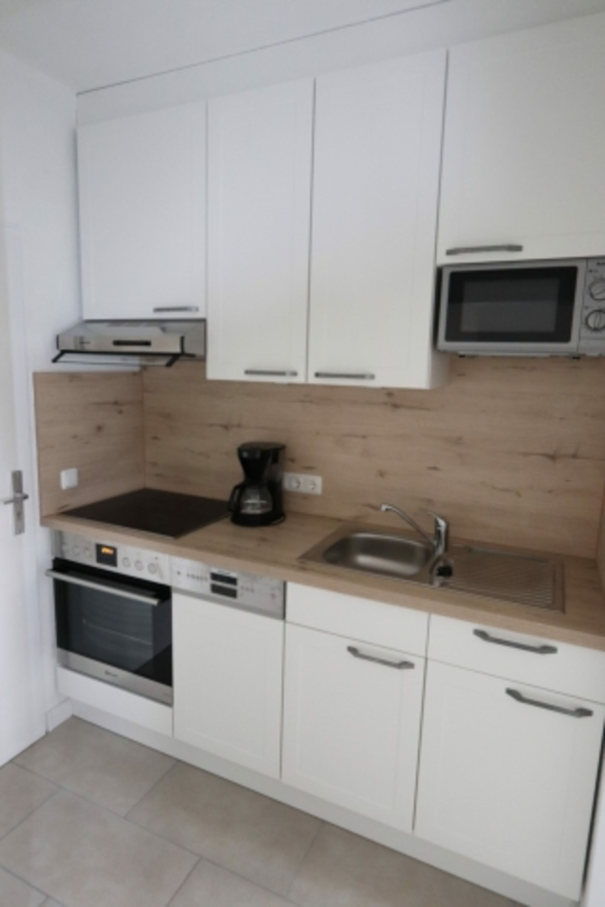 Die vollausgestatte Küche mit Cerankochfeld, Backofen, Kühl/Gefrierkombination, Mikrowelle, Geschirrspüler und sämtlichen Kleinutensilien lässt keine Wünsche offen. Der Esstisch bietet vier Plätze (für ein Kinderhochstuhl ist gesorgt).