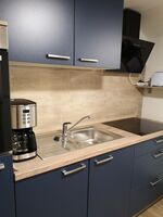 4-Platten Herd, Cerankochfeld, Dunstabzugshaube, Gefrierschrank, Korkenzieher / Flaschenöffner, Geschirrhandtücher, Mülltüten