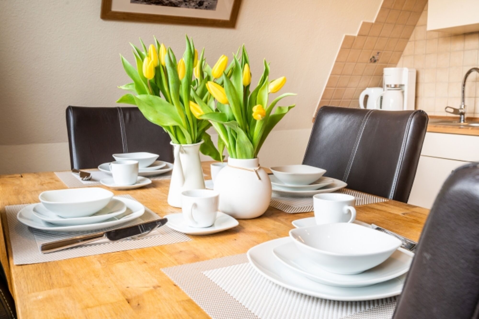 4-Platten Herd, Cerankochfeld, Dunstabzugshaube, Kühlschrank mit Gefrierfach, Nespresso-Automat, Korkenzieher / Flaschenöffner, Gewürze (Salz, Pfeffer, Zucker), Öl / Essig, Geschirrhandtücher, Mülltüten, Essplatz in der Küche