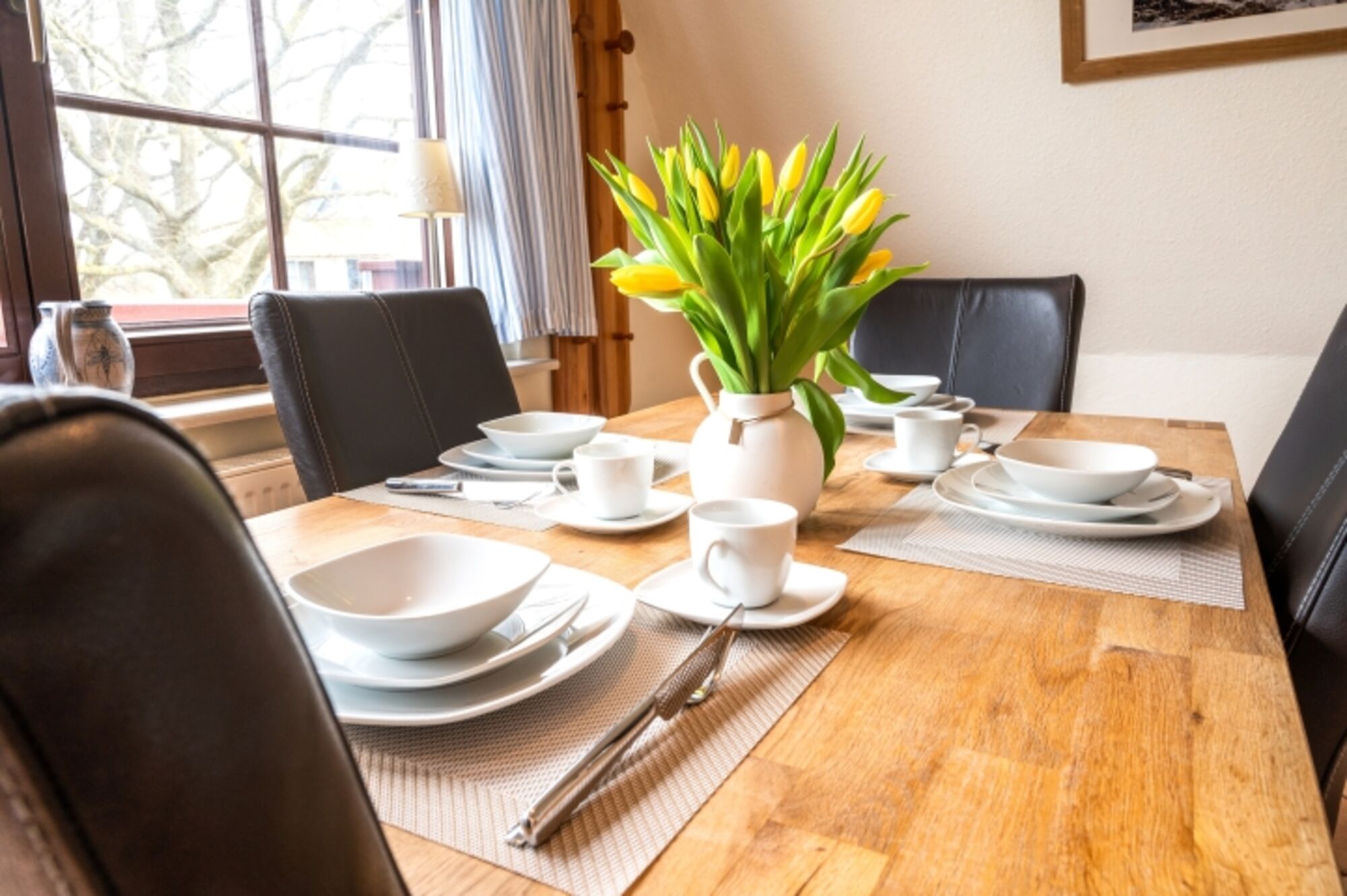 Frische Brötchen am Morgen und Kaffee mit Blick ins Grüne – perfekt für den Start in den Tag.