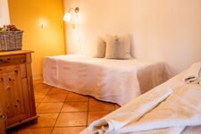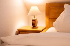 Doppelbett 1,80 x 2,00m, Einzelbett, Kommode, Spiegel, Leselampe am Bett, Fliegengitter