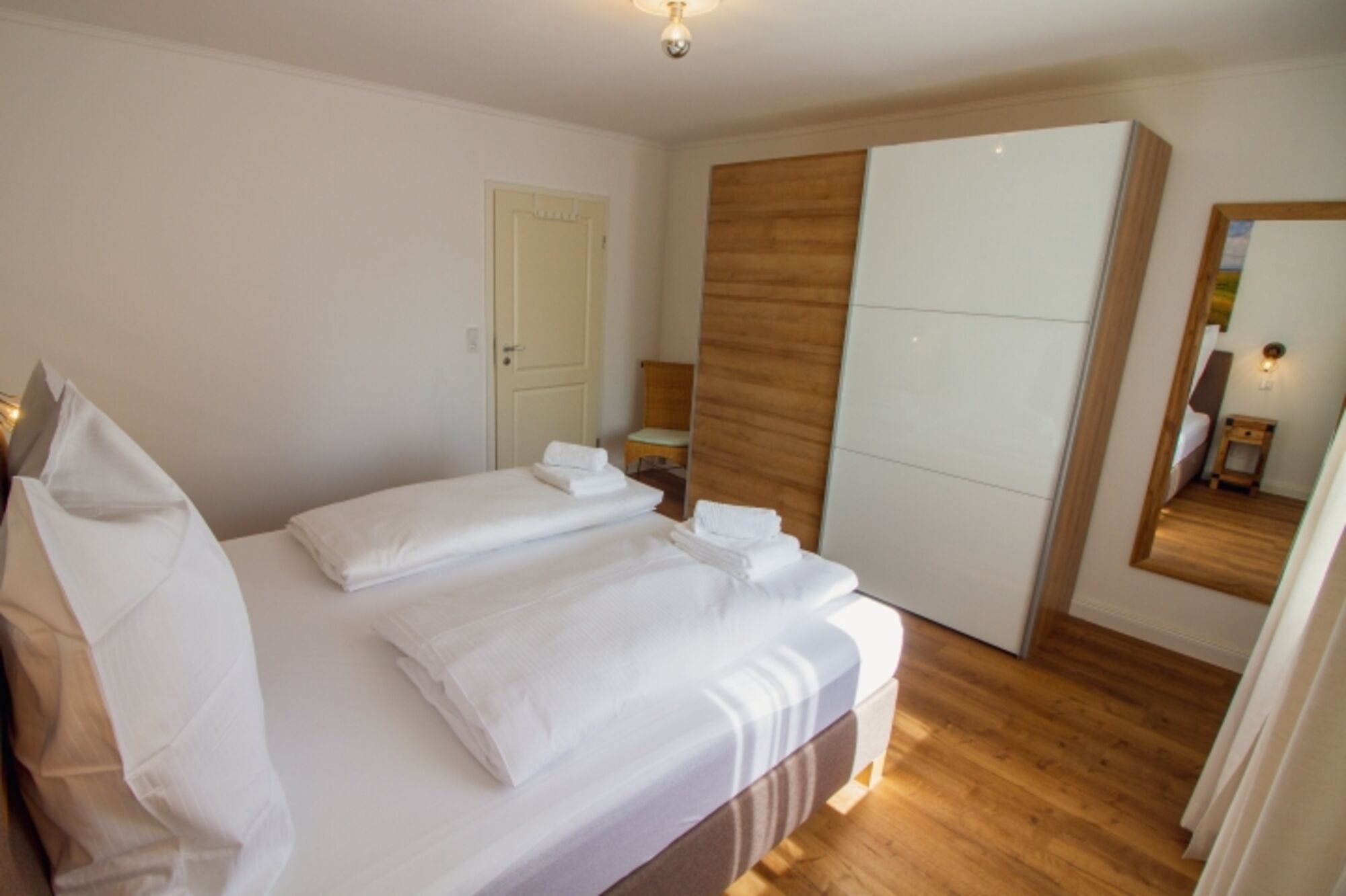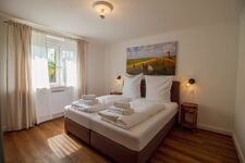 Das Schlafzimmer hat ein großes Boxspring Doppelbett (180x200cm) und bietet viel Komfort.