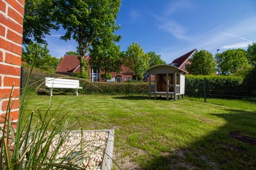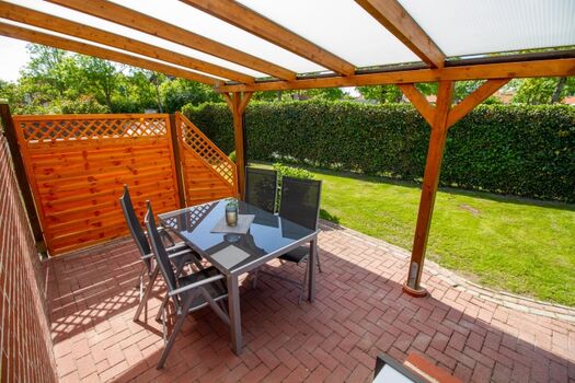 Im Außenbereich können Sie auf der überdachten Terrasse Ihre Seele baumeln las sen. Ihre Vierbeiner kommen hier natürlich auch nicht zu kurz, eine große umzäunte Rasenfläche bietet viel Platz zum toben und die Hundehütte den nötigen Platz zum entspannen.