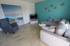Das gemütliche Sofa im Wohnzimmer kann zu einer Schlafgelegenheit umgebaut werden. Hier können bequem 2 weitere Personen schlafen. Ein Fernsehgerät steht ebenfalls zur Verfügung.