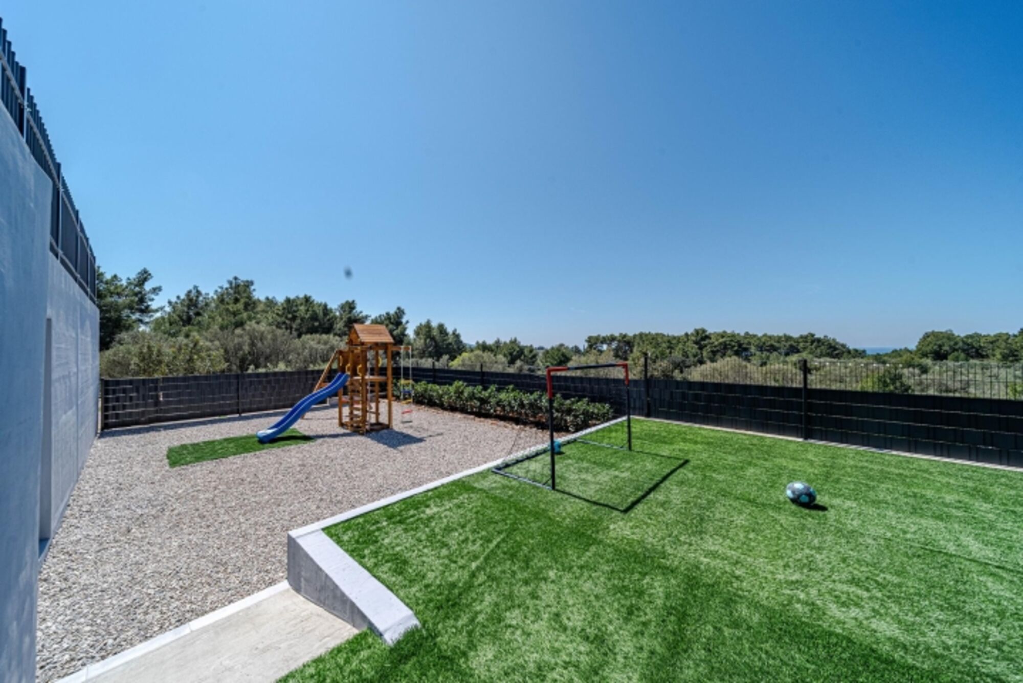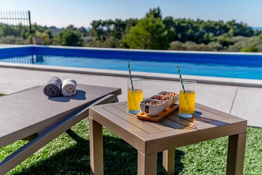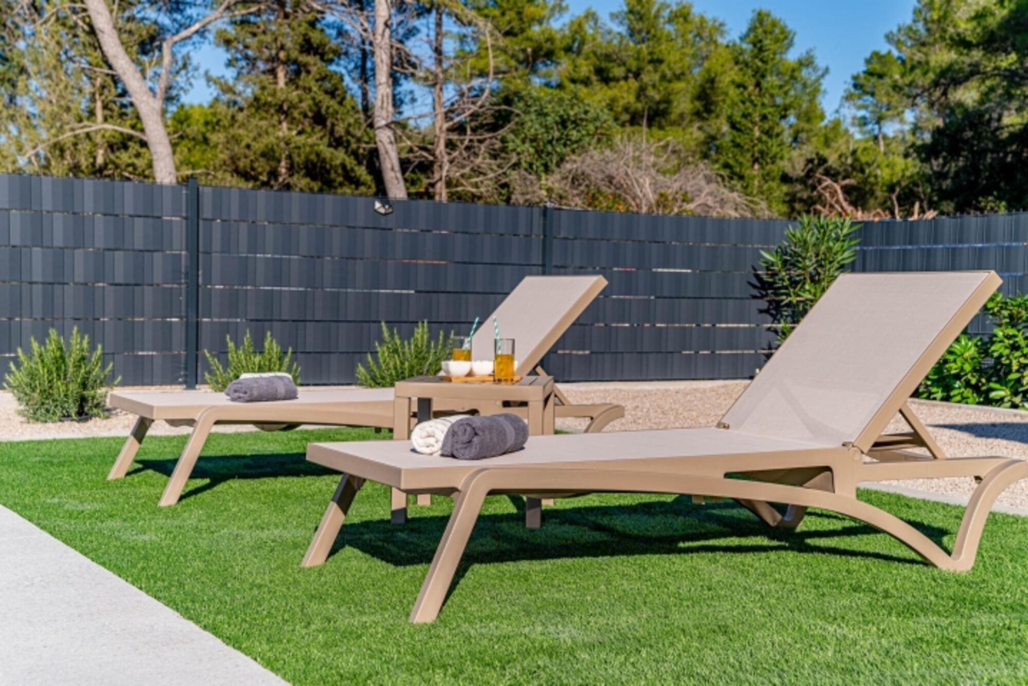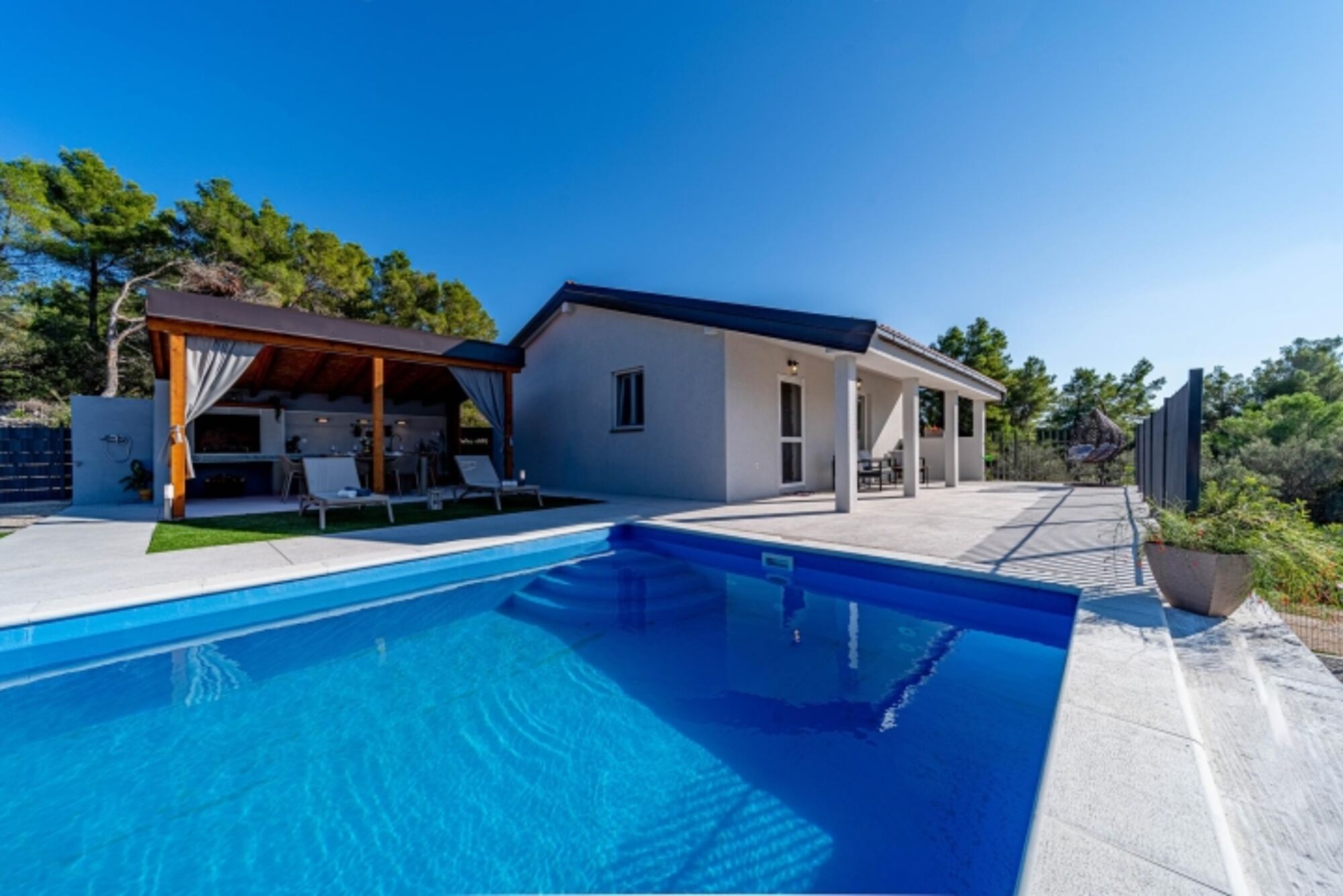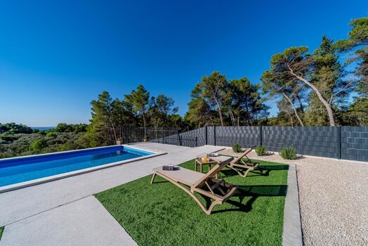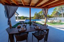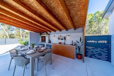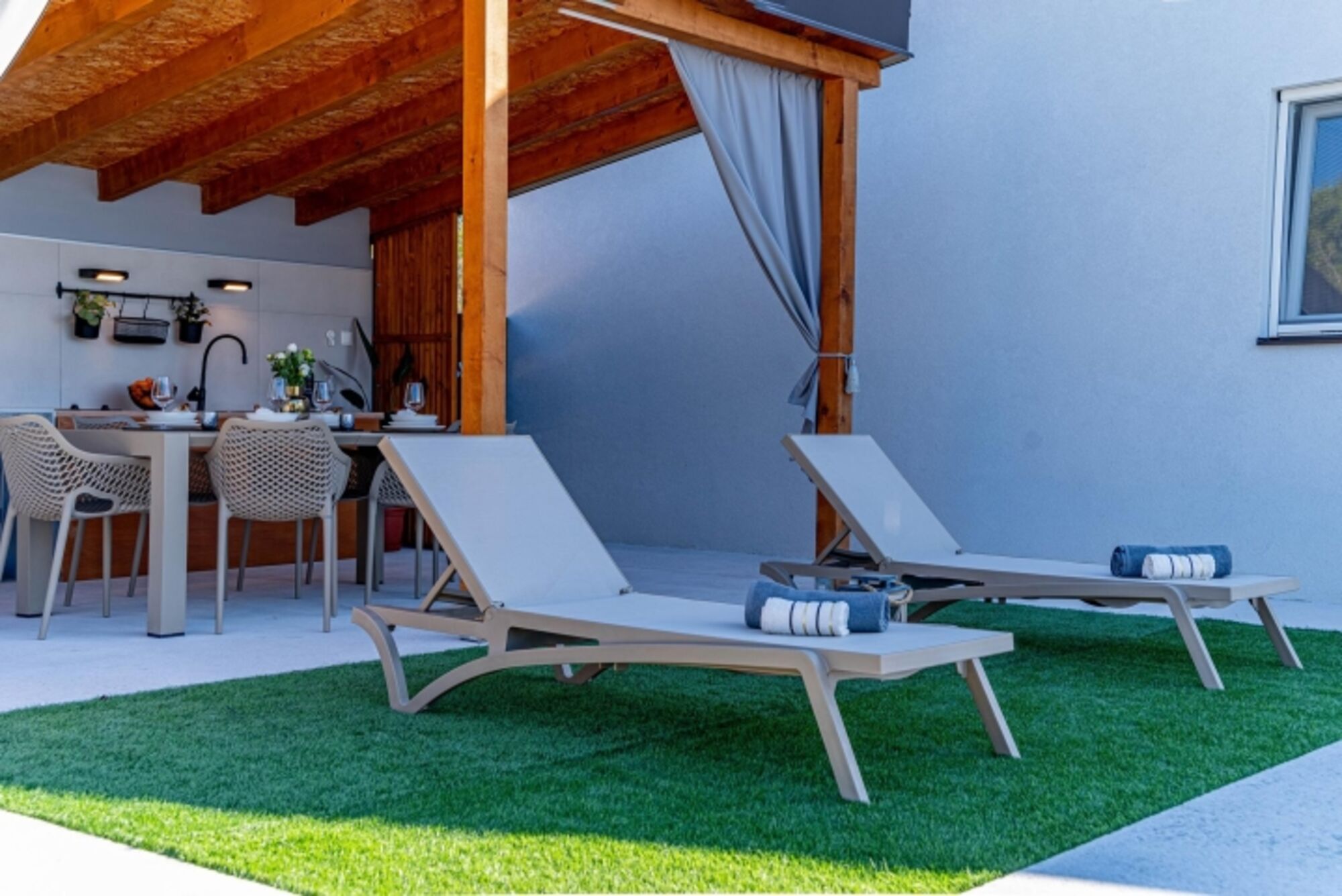 Die Idee bestand darin, ein komfortables und funktionales Ferienhaus zu schaffen, in dem man sich wie zu Hause fühlt. Der Grillplatz im Freien am Pool und die umliegenden Terrassen sind schön gestaltet und Sie können problemlos kommunizieren, während Sie nebenbei immer einen kleinen Rückzugsort für sich finden.