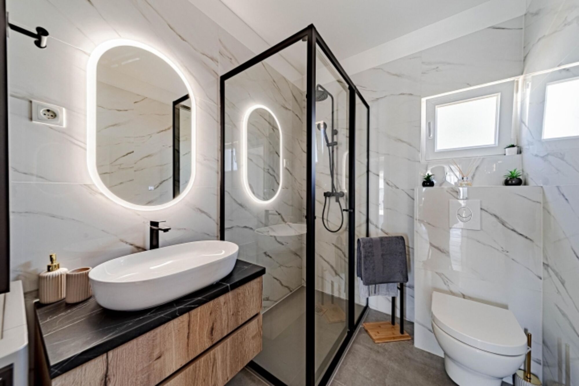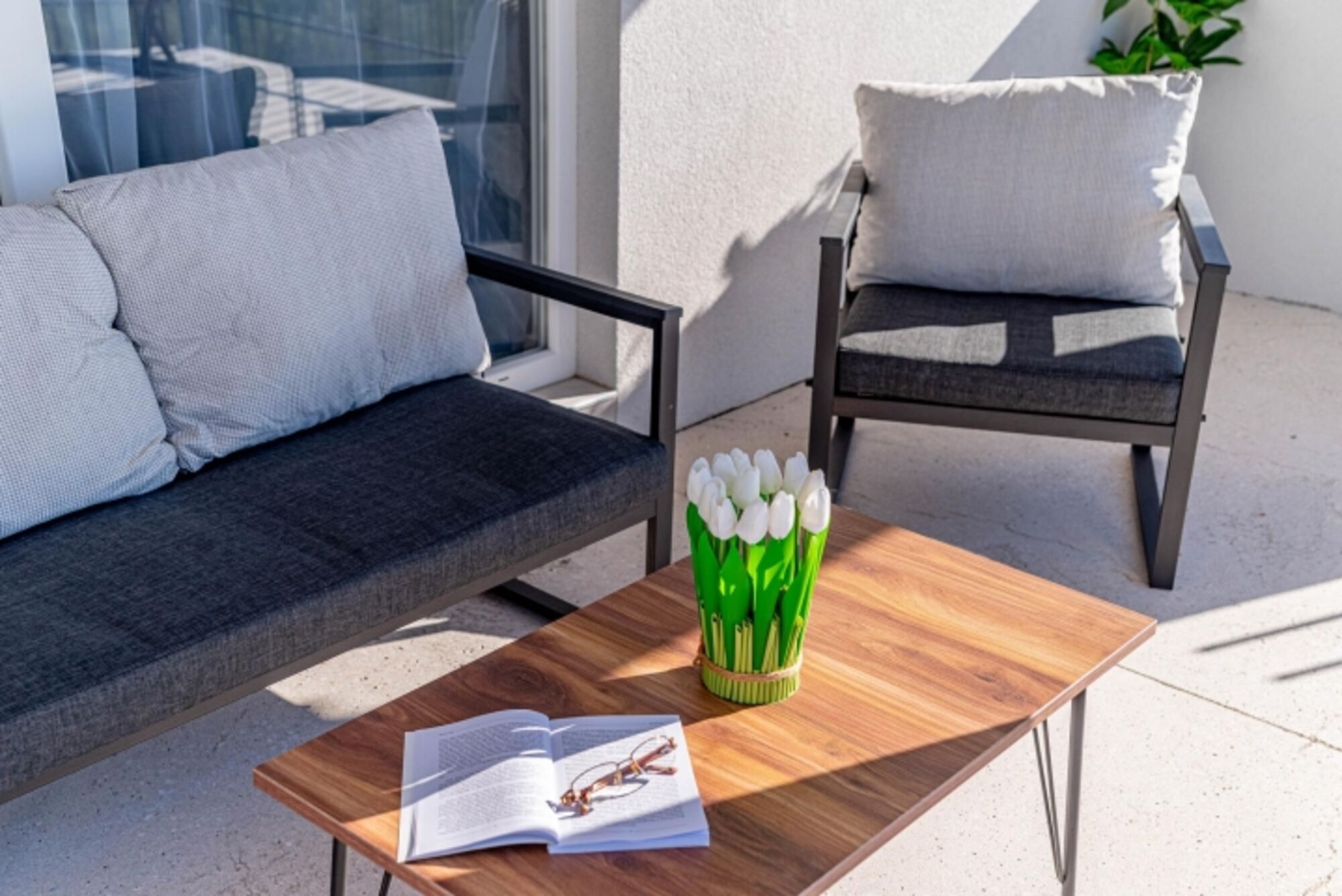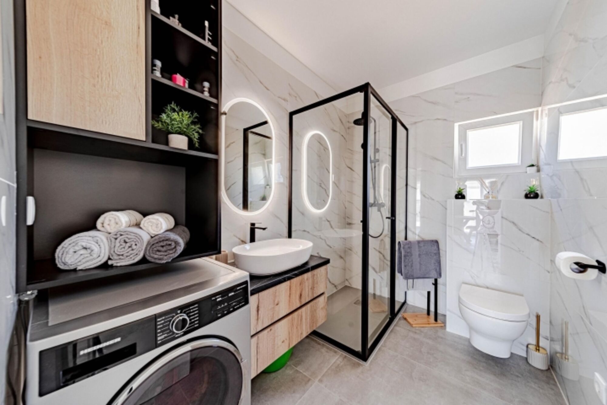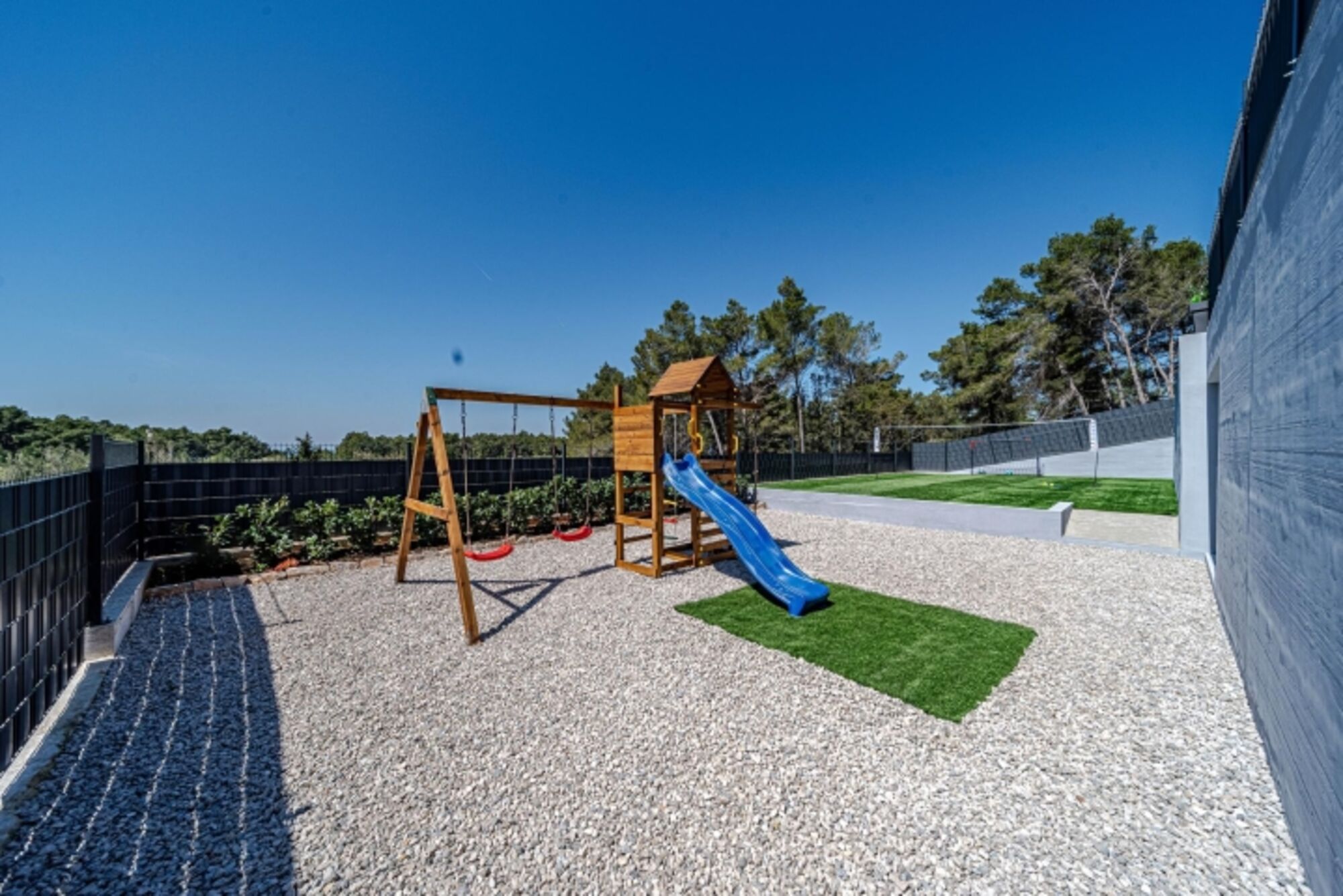 Die Idee bestand darin, ein komfortables und funktionales Ferienhaus zu schaffen, in dem man sich wie zu Hause fühlt. Der Grillplatz im Freien am Pool und die umliegenden Terrassen sind schön gestaltet und Sie können problemlos kommunizieren, während Sie nebenbei immer einen kleinen Rückzugsort für sich finden.