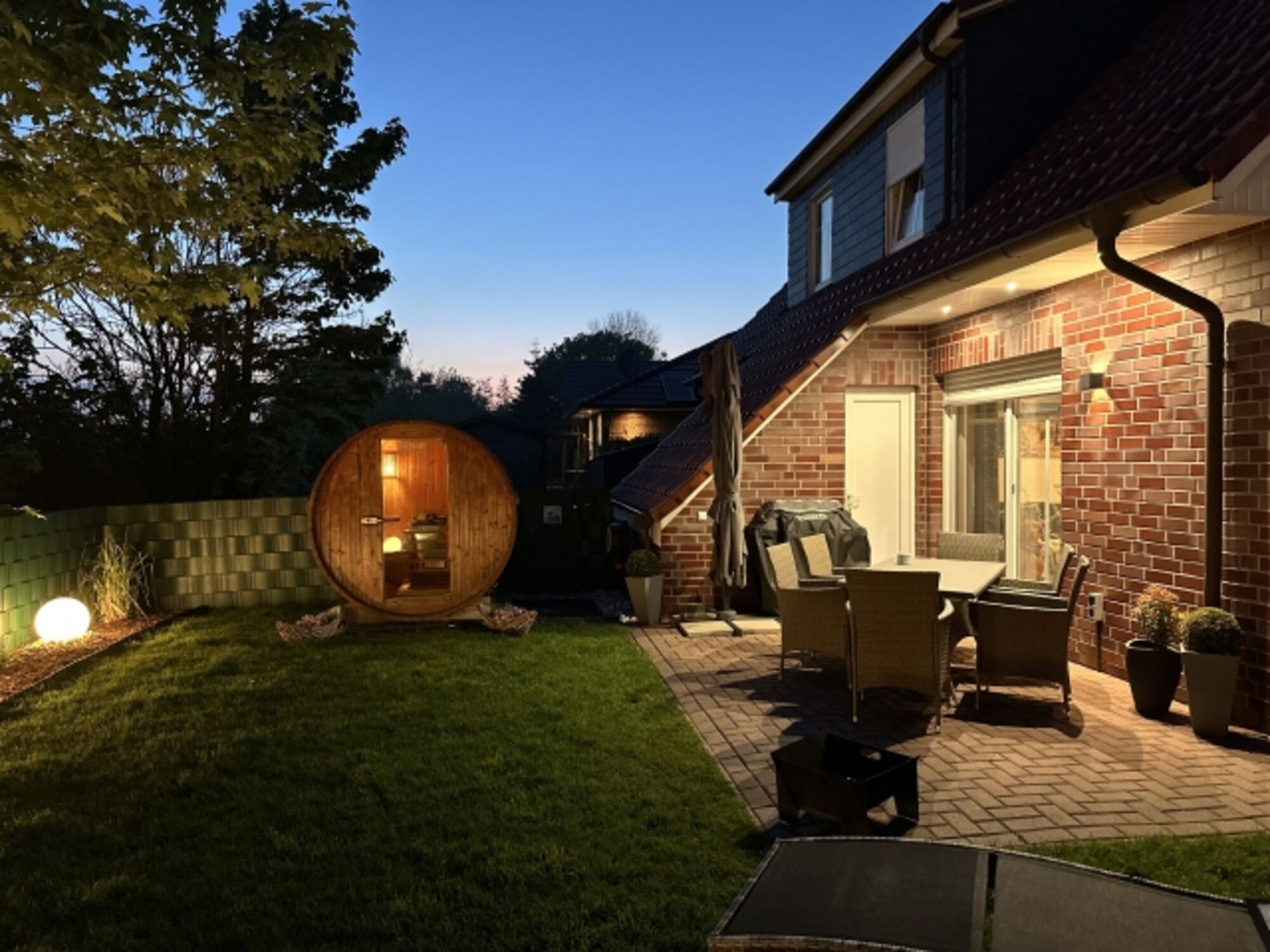 Genießen Sie erholsame Urlaubstage in unserem modernen Ferienhaus – ideal für Familien und Hundebesitzer! Auf ca. 85 m² erwarten Sie zwei gemütliche Schlafzimmer mit Doppelbetten, zwei weitere Einzelbetten im Dachgeschoss sowie ein Kinderbett. Zwei moderne Bäder mit Dusche sorgen für Komfort. Der helle Wohn-Ess-Bereich mit voll ausgestatteter Küche lädt zu gemeinsamen Momenten ein, während ein Hauswirtschaftsraum mit Waschmaschine und Trockner für zusätzlichen Komfort sorgt. Die hochwertige Ausstattung, eine liebevoll angelegte Außenanlage (komplett eingezäunt) und Ihre private Sauna machen den Aufenthalt besonders. Zwei Hunde sind herzlich willkommen – und sogar im Preis inbegriffen. Hier beginnt Ihr Wohlfühlurlaub!