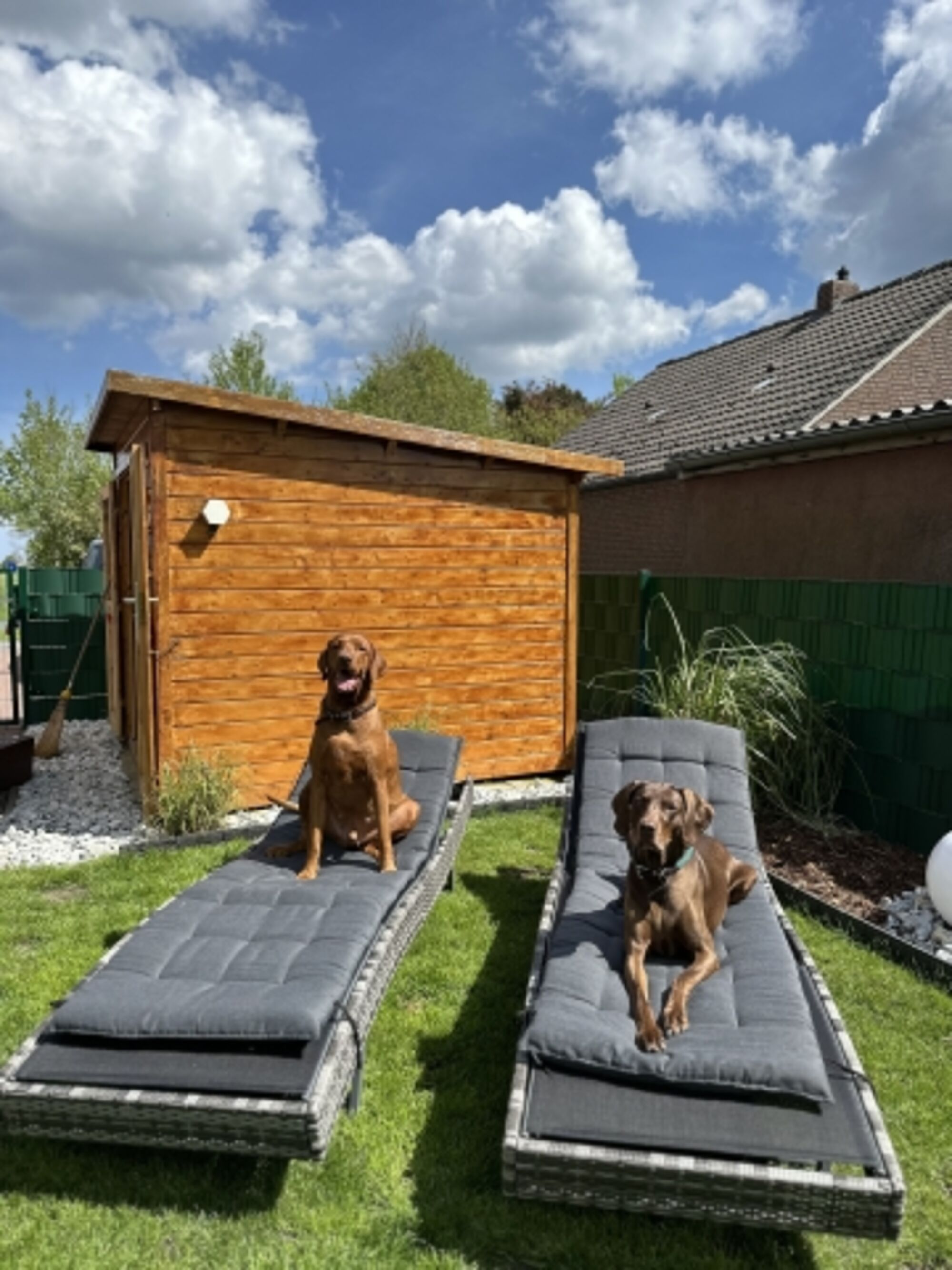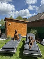 | Ausstattung für Hunde: | Hunde wohnen kostenfrei Abduschen für HundeHundedecke / Hundekorb Hundespaziergang vom Haus aus möglich Tierarzt in der Nähe (bis 20km) Umfriedeter Gartenbereich (komplett mit Zaun / nicht nur Hecke) Zaunhöhe bis 1,20 Meter |