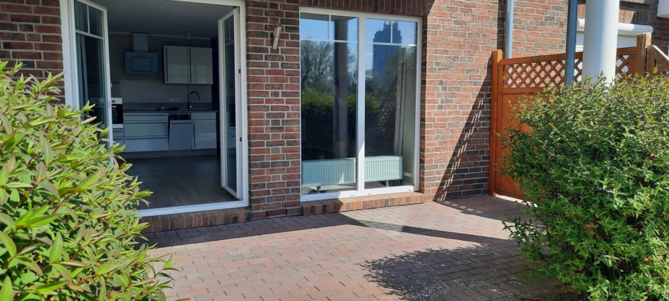 Unsere Strandferienwohnung liegt ebenerdig im Erdgeschoss in einer verkehrsberuhigten Zone (Spielstraße). Es gibt ein Schlafzimmer, einen großen Wohn-Küchenbereich mit Essplatz und ein Duschbad. Vom Wohnzimmer gelangt man auf die große überdachte Terrasse.