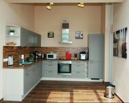 Cerankochfeld, Dunstabzugshaube, Kühlschrank mit Gefrierfach, Kaffeevollautomat, Eierkocher, Mixer, Korkenzieher / Flaschenöffner