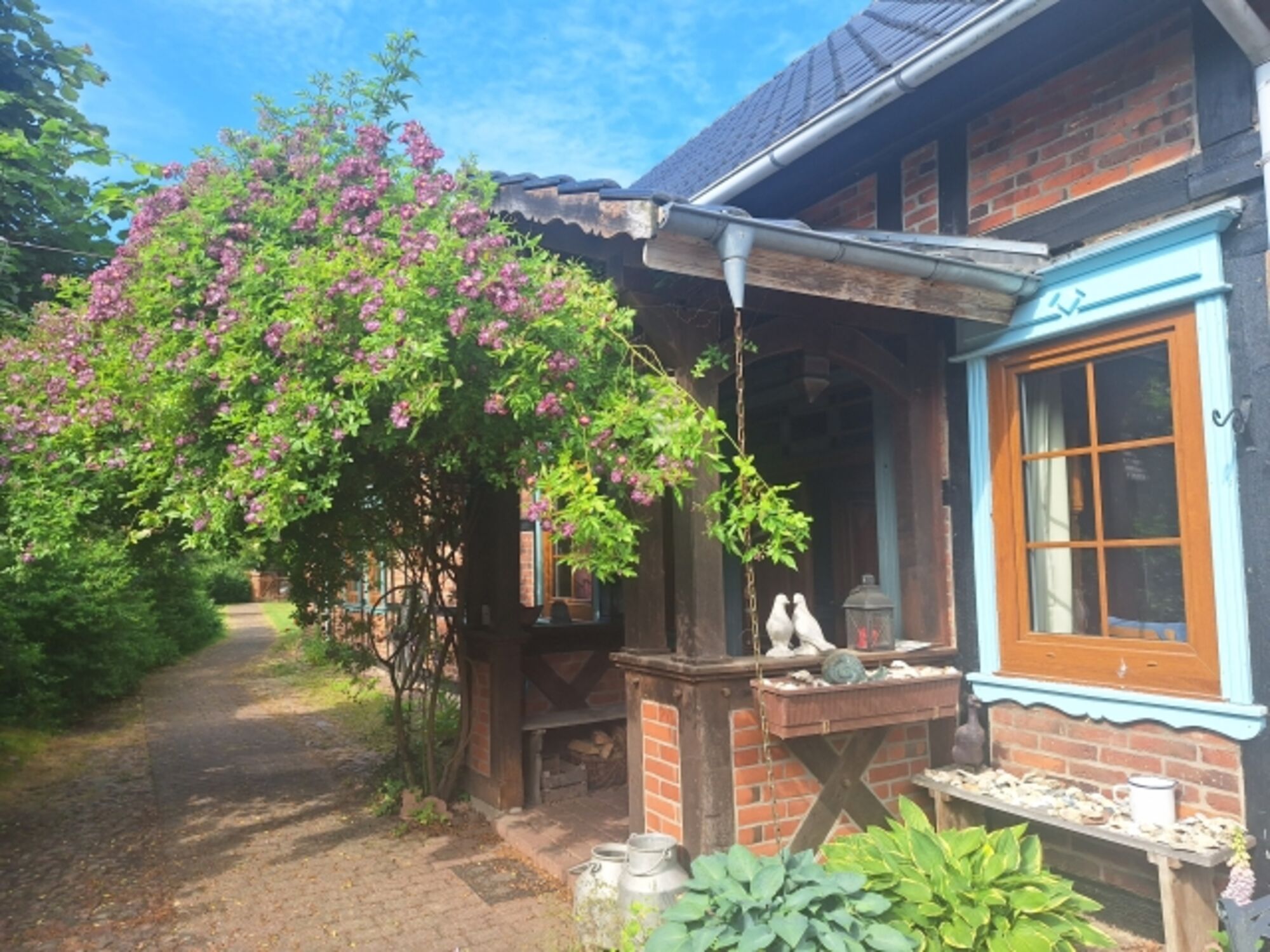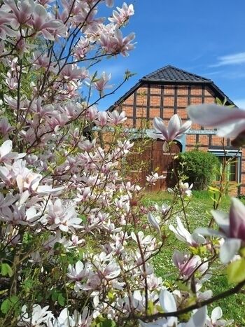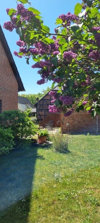 Das Haupthaus ist 1877 erbaut und liebevoll originalgetreu restauriert. Die beiden Gästewohnungen liegen in einem jüngeren Anbau, der an das Haupthaus anschließt – es handelt sich um die ehemaligen Stallgebäude. Unser komplett eingezäuntes Grundstück ist weitgehend naturbelassen - grünende / blühende Natur . Willkommen auf dem Land!