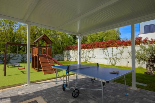 Die Villa Istra Relax Sapphire bietet luxuriöse Unterkünfte mit vier Schlafzimmern, einem privaten beheizten Pool und einem großzügigen Garten. Außenanlagen wie Trampolin, Tischfußball und Tischtennis machen sie zum idealen Ziel für einen Familienurlaub. Mit modernem Interieur bietet die Villa maximalen Komfort für bis zu 9 Personen.