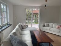 Im Garten genießen Sie zwei Terrassen, Strandkorb und Rasenfläche. Der Teil ist komplett eingezäunt, so dass auch die Fellnase freien Auslauf genießt.