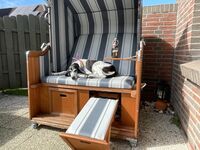 Liegewiese, Strandkorb, Gartenmöbel, Kohlegrill, Markise, Windschutz