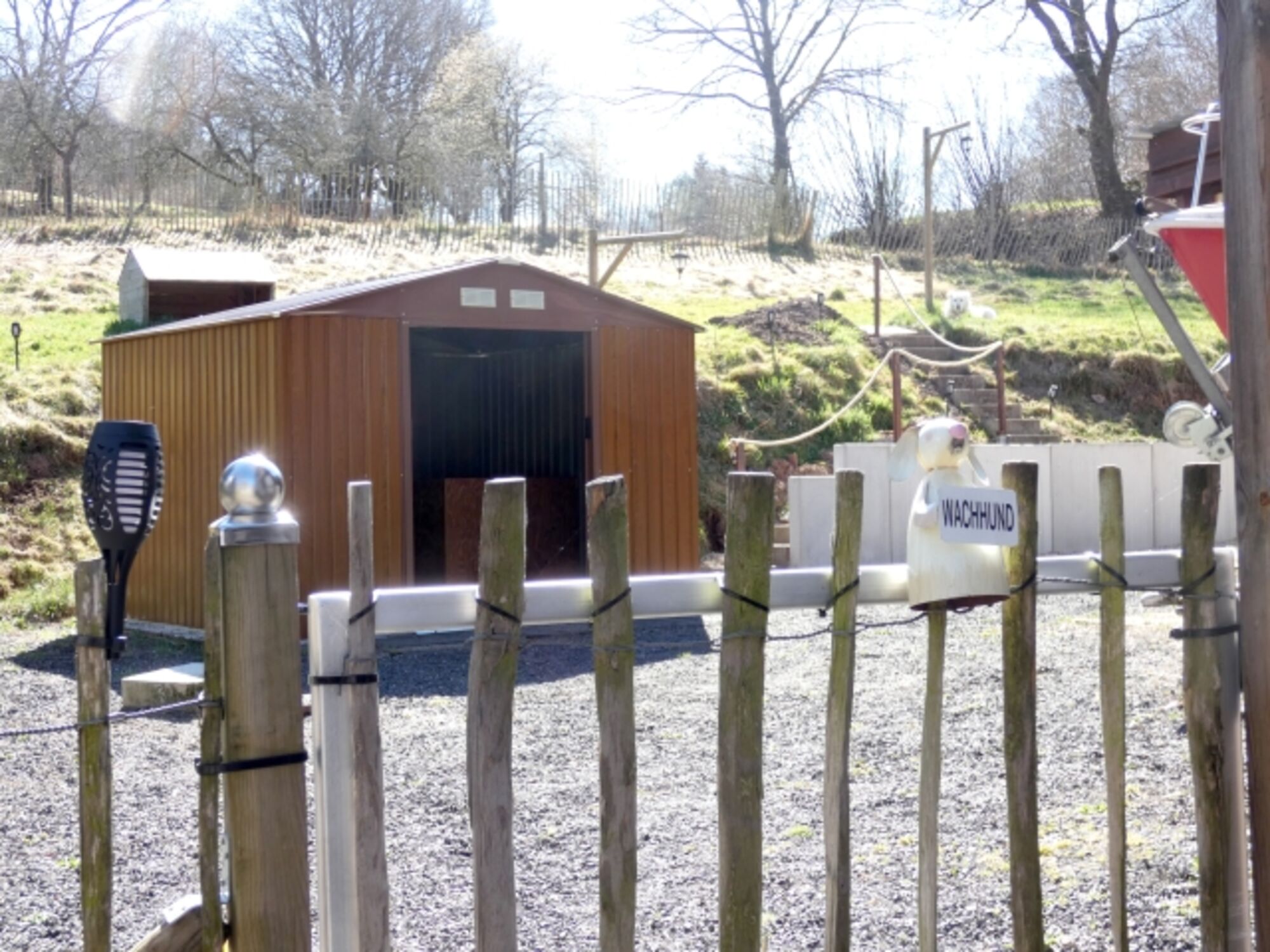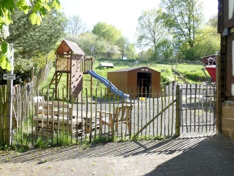 Eine ca. 500 m² große mit ca. 1,20 m hohem Haselnuss- bzw. Kastanienholz eingezäunte Wiese auf dem Grundstück kann für Kinder zum Toben und Spielen oder für Hunde als Auslauf genutzt werden.