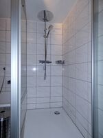 Das Bad verfügt über eine Dusche und Badewanne. Ein Fön, Waschmaschine,Trockner und Wäschespinne sind ebenfalls vorhanden.