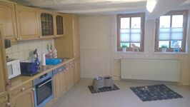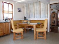 Das Haus verfügt über eine große komplett eingerichtete Küche mit vielen Küchenutensilien. An einem großen Tisch mit einer Eckbank kann man nicht nur gemeinsam Essen sondern auch gemütliche Spieleabende verbringen.