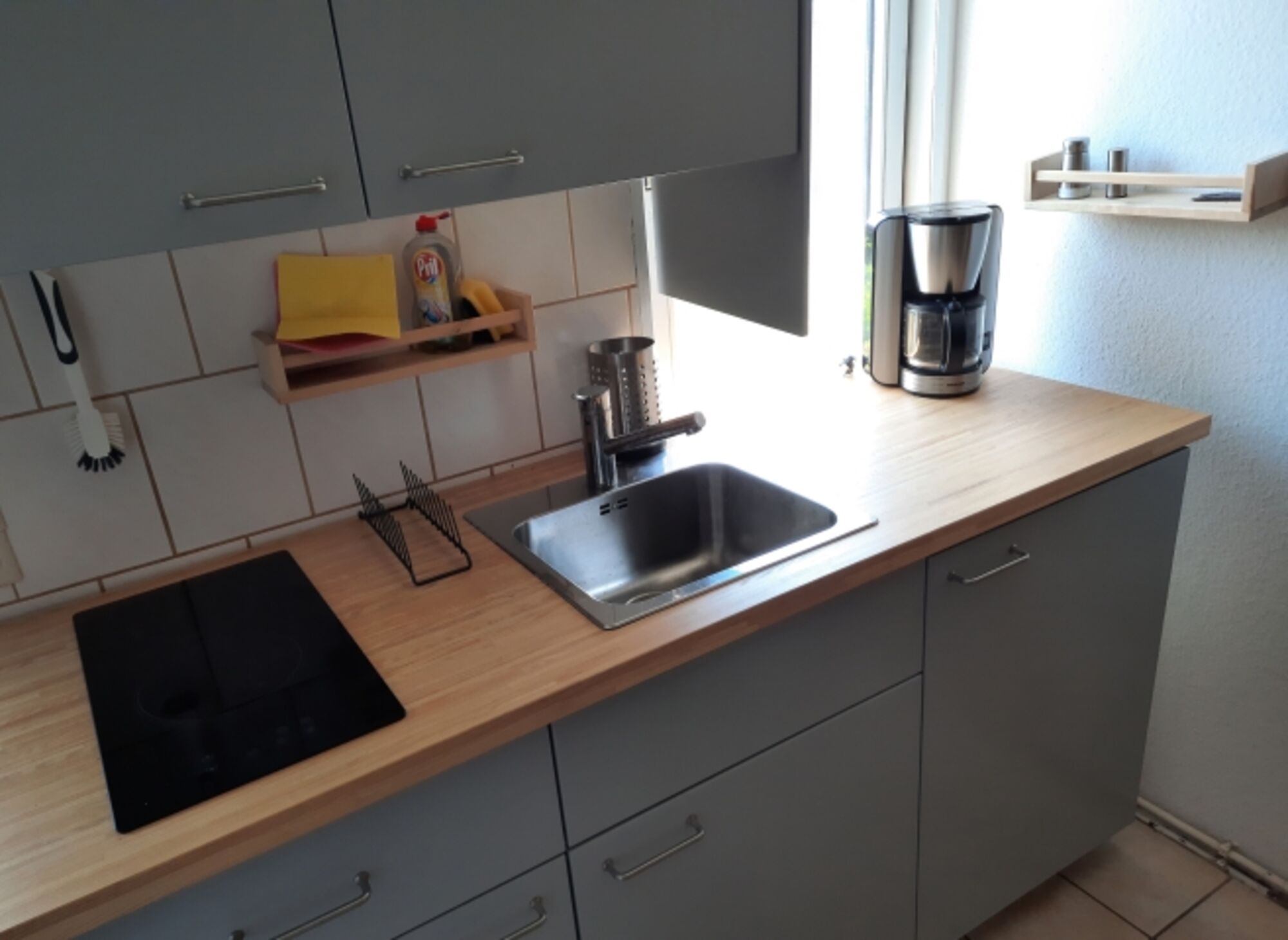 4-Platten Herd, Cerankochfeld, Dunstabzugshaube, Korkenzieher / Flaschenöffner, Gewürze (Salz, Pfeffer, Zucker), Geschirrhandtücher, Mülltüten, Essplatz in der Küche