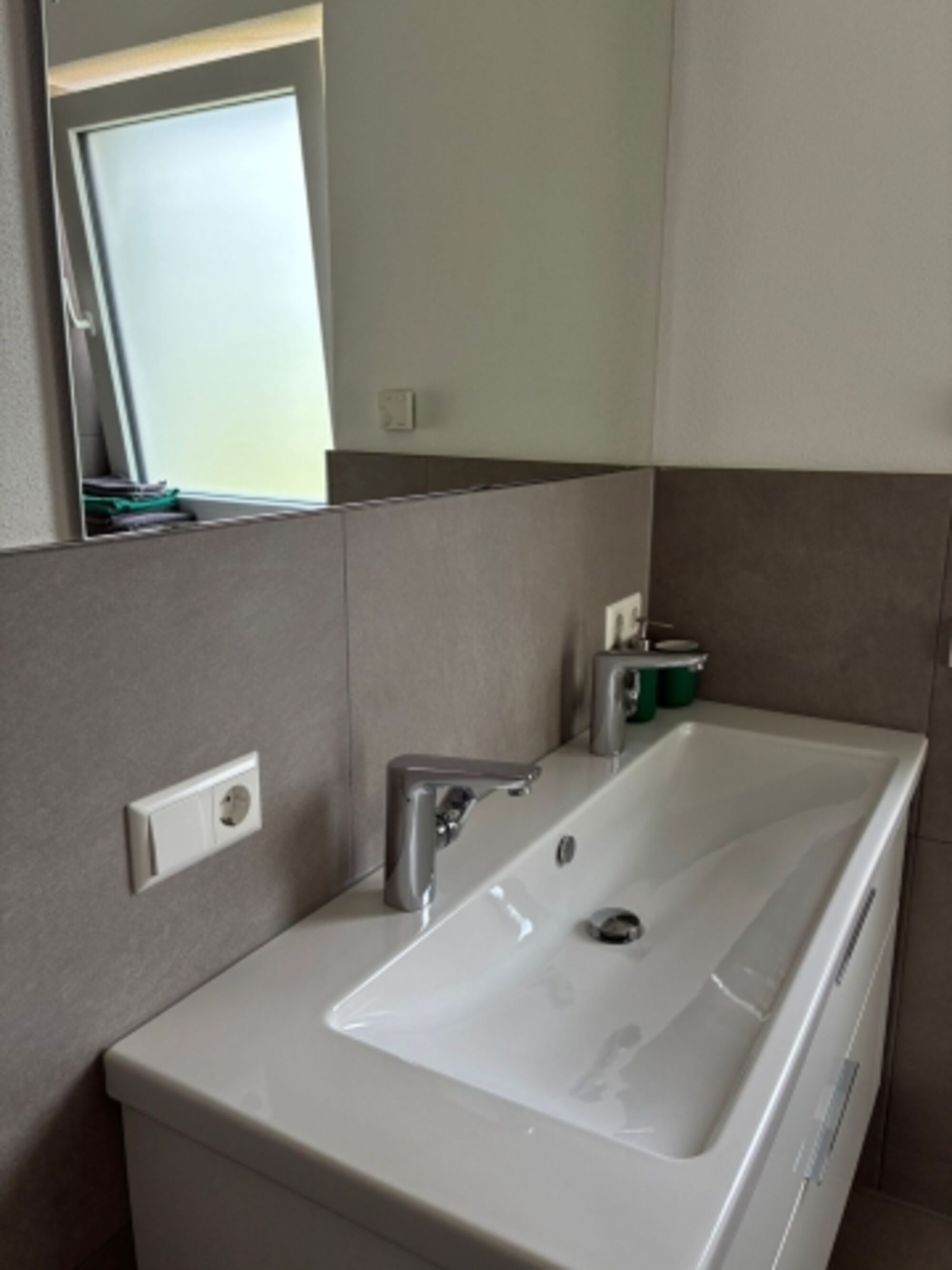 Die Wohnung liegt im Parterre eines Neubaus, welcher im Jahr 2020 bezugsfertig war. Die Wohnung besteht aus 2 Schlafzimmern. Die Schlafzimmer bieten viel Licht, da beide Schlafzimmer 2 Fenster haben, welche sich durch Jalousien und Rollläden verdunkeln lassen. Das größere Zimmer bietet durch ein Sofa zudem eine gemütliche Aufenthaltsmöglichkeit und Platz zum Ausspannen. Es besteht insgesamt aus 3 Schlafmöglichkeiten. Im Zimmer befinden sich 2 Einzelbetten (Boxspring) und eine Schlafcouch. Die Einzelbetten lassen sich mühelos zu einem Doppelbett zusammenschieben. Das kleinere Schlafzimmer besteht aus einem 1,40cmx200cm Bett. Zudem eine Sitzgelegenheit mit Arbeitstisch. Beide Zimmer haben einen Kleiderschrank.
