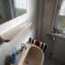 Das Badezimmer befindet sich direkt neben dem Schlafzimmer, welches über eine Dusche, WC, Spiegel und Waschbecken verfügt.