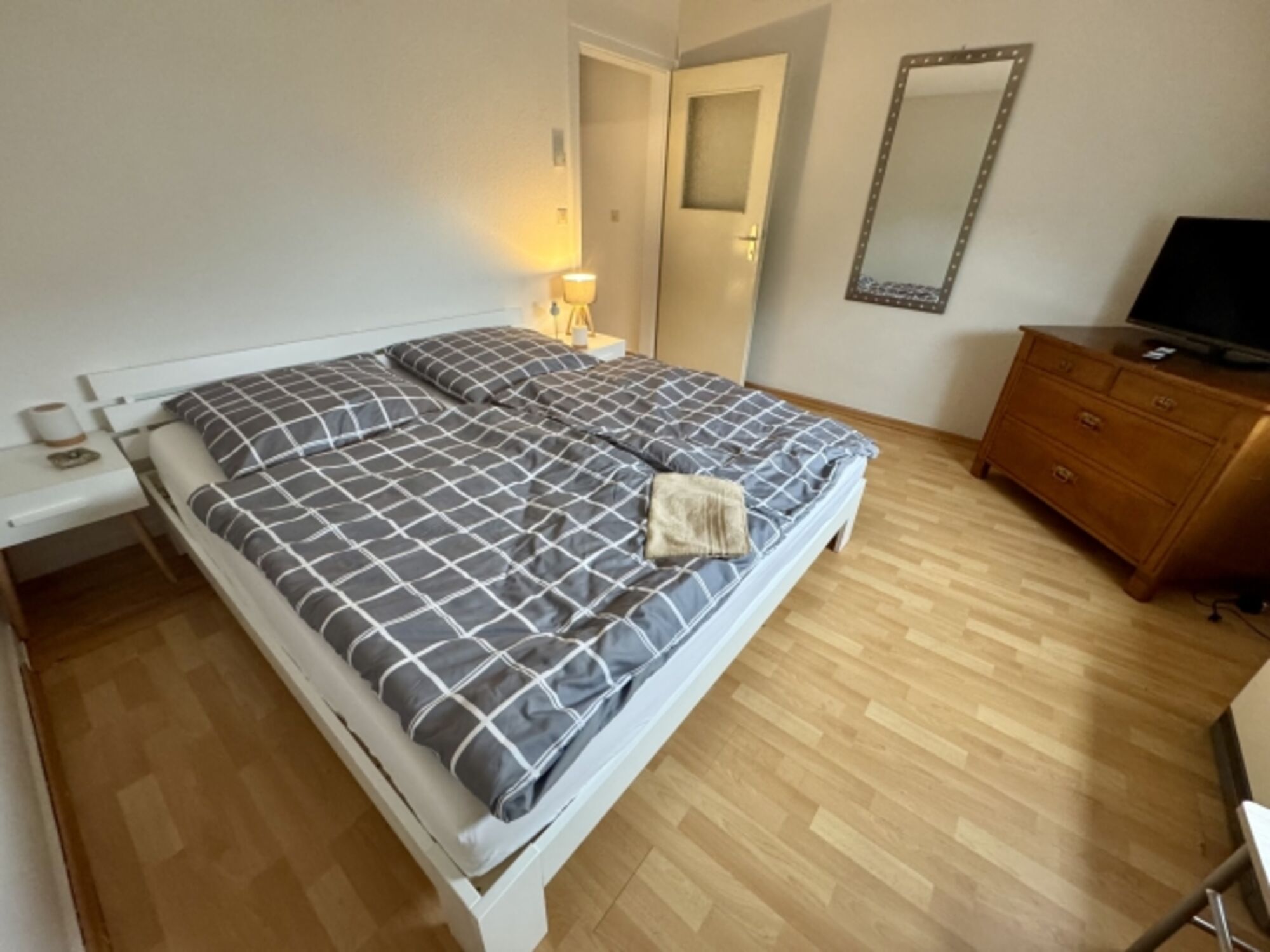 Doppelbett 1,80 x 2,00m, Spiegel, Leselampe am Bett