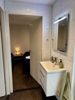 Beide Schlafzimmer verfügen über direkten Zugang zum modernen Badezimmer. Ein separates WC im Flur sorgt für zusätzlichen Komfort.