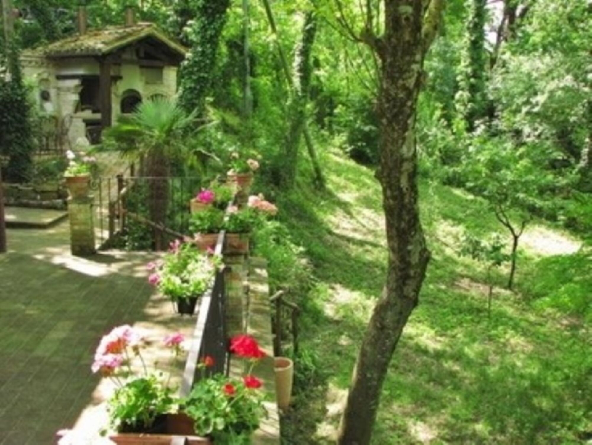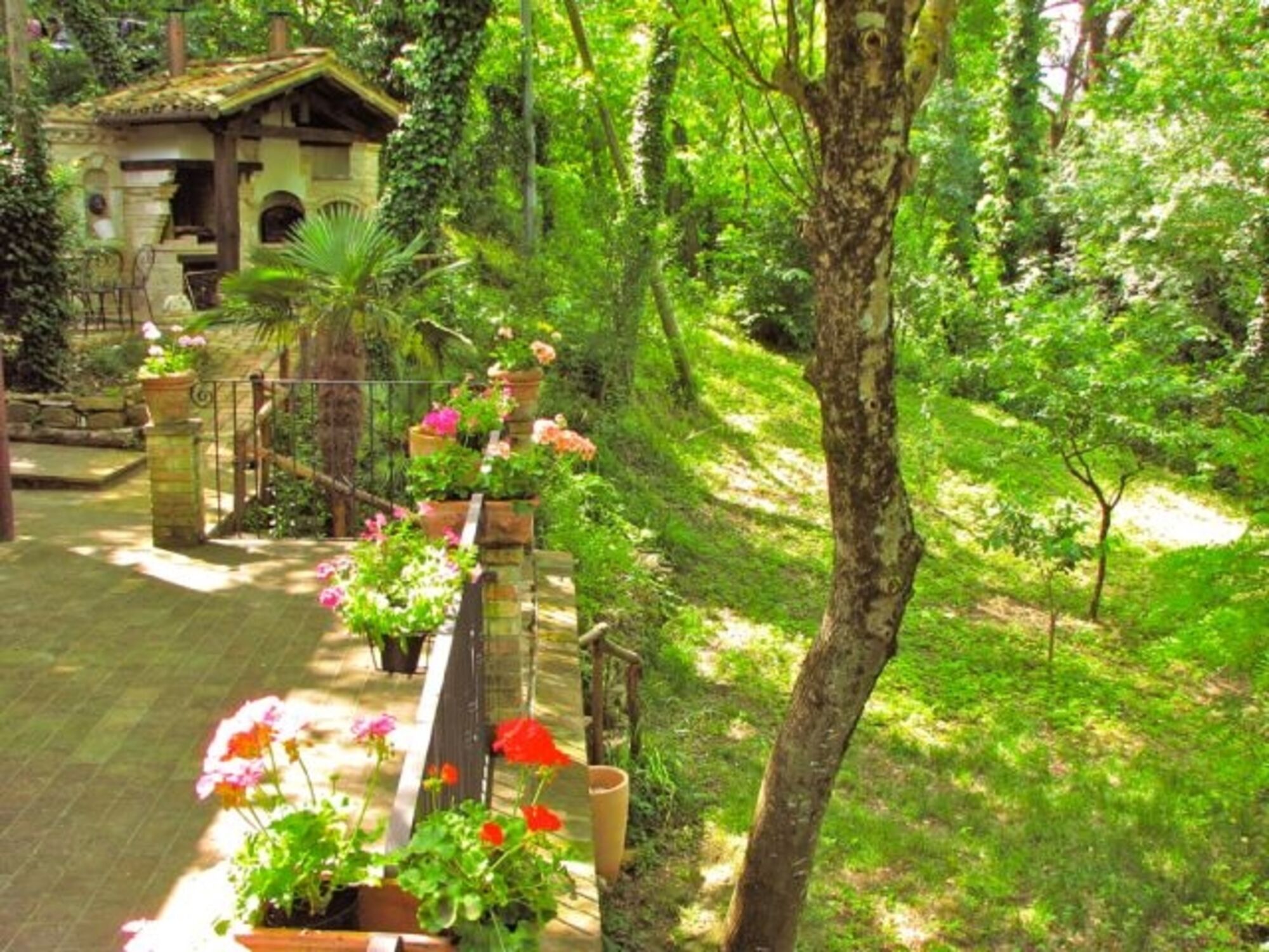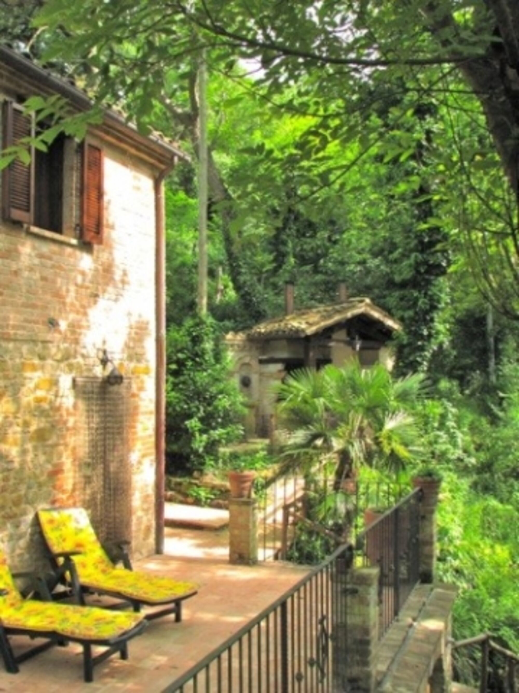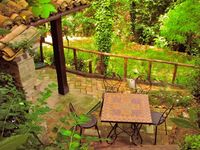 Von der grosszügigen abgeschlossenen Terrasse vor dem Wohnzimmer kann man den kleinen Bach sehen und an einem Sommerabend ist dieser Ort, auf Grund der Kühle, die vom Bach aufsteigt, ein schöner Platz, um bei einem Glas Rotwein den Tag ausklingen zu lassen.