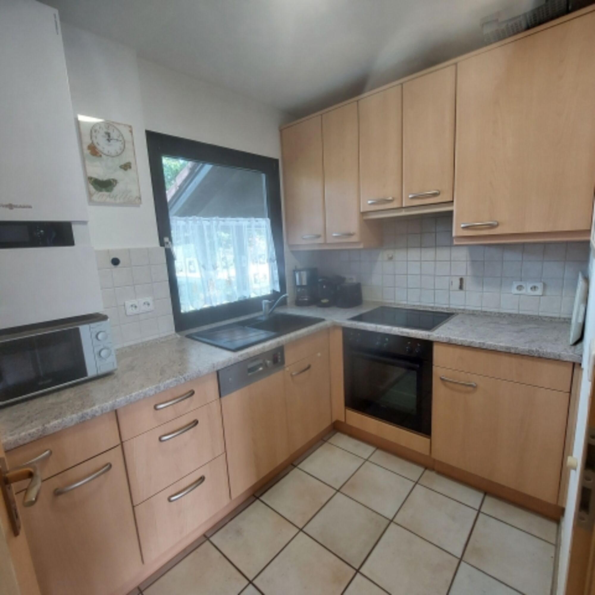 Die voll ausgestattete Einbauküche lässt keine Wünsche offen: Cerankochfeld, Geschirrspüler,