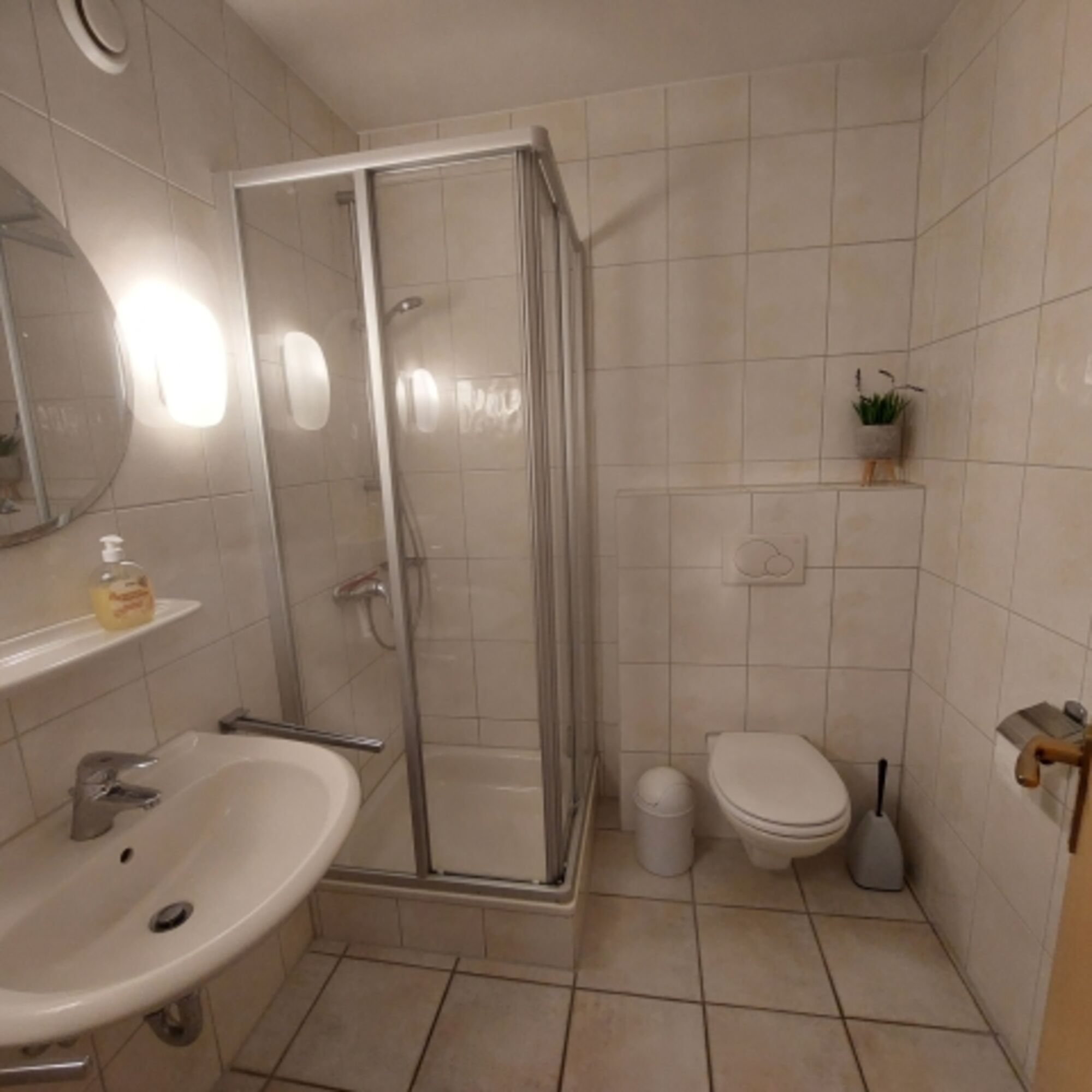 Das moderne Duschbad mit WC verfügt über ein praktisches Raumkonzept (ohne Tageslichtfenster – siehe Grundriss).