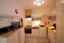 4-Platten Herd, Cerankochfeld, Dunstabzugshaube, Kühlschrank mit Gefrierfach, Eierkocher, Mixer, Korkenzieher / Flaschenöffner