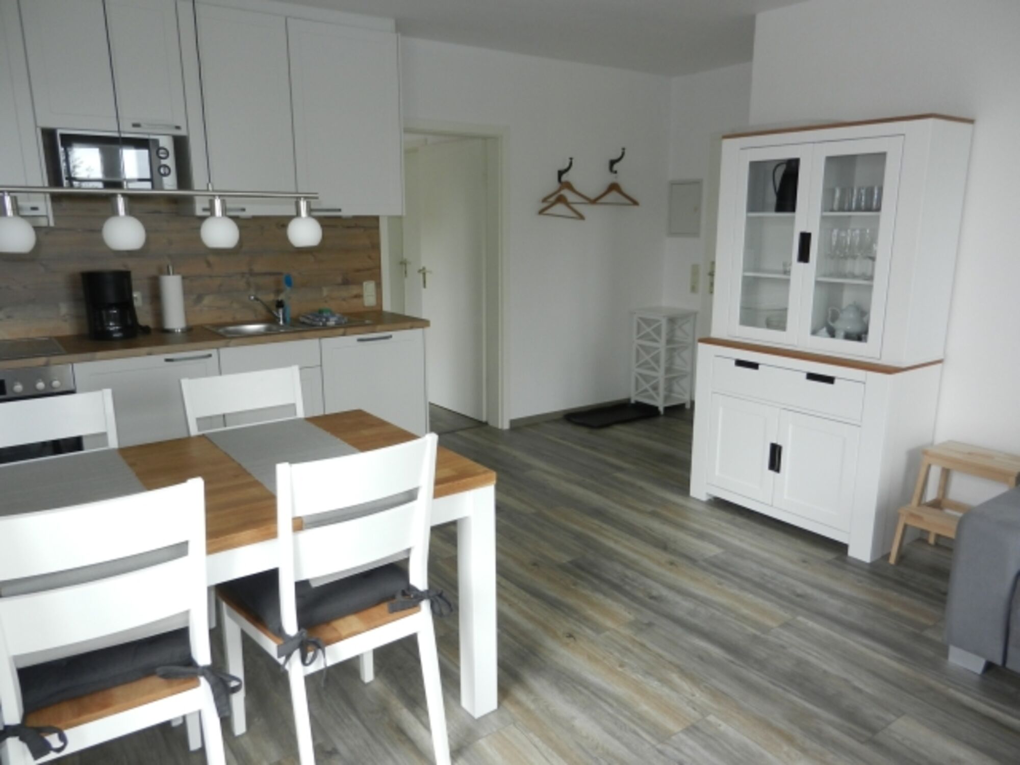 Die vollausgestatte Küche mit Cerankochfeld, Backofen, Kühl/Gefrierkombination, Mikrowelle, Geschirrspüler und sämtlichen Kleinutensilien lässt keine Wünsche offen. Der Esstisch bietet vier Plätze (für ein Kinderhochstuhl ist gesorgt).