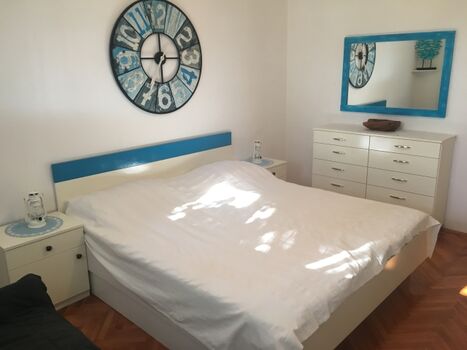 Die großzügige Ferienwohnung ist ideal für 2-3 Personen. Die Terrasse ist eingezäunt, also auch ideal für Hunde. Eine eingezahlte Hundewiese ist circa 30 m vom Haus entfernt. Circa 200 m entfernt ist ein Supermarkt und das Meer ist circa 400 m entfernt. Der Hundestrand ist etwas weiter, circa 3 km entfernt.
