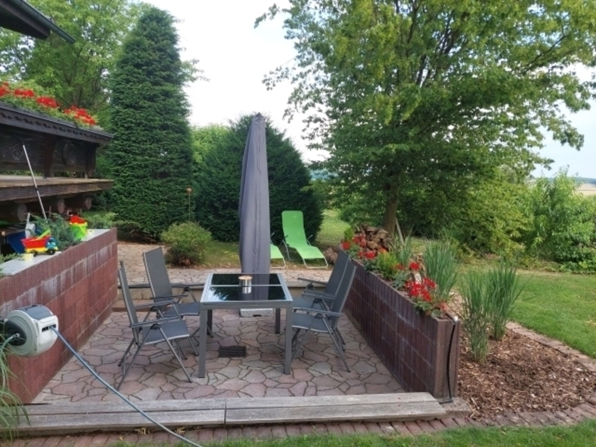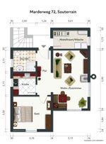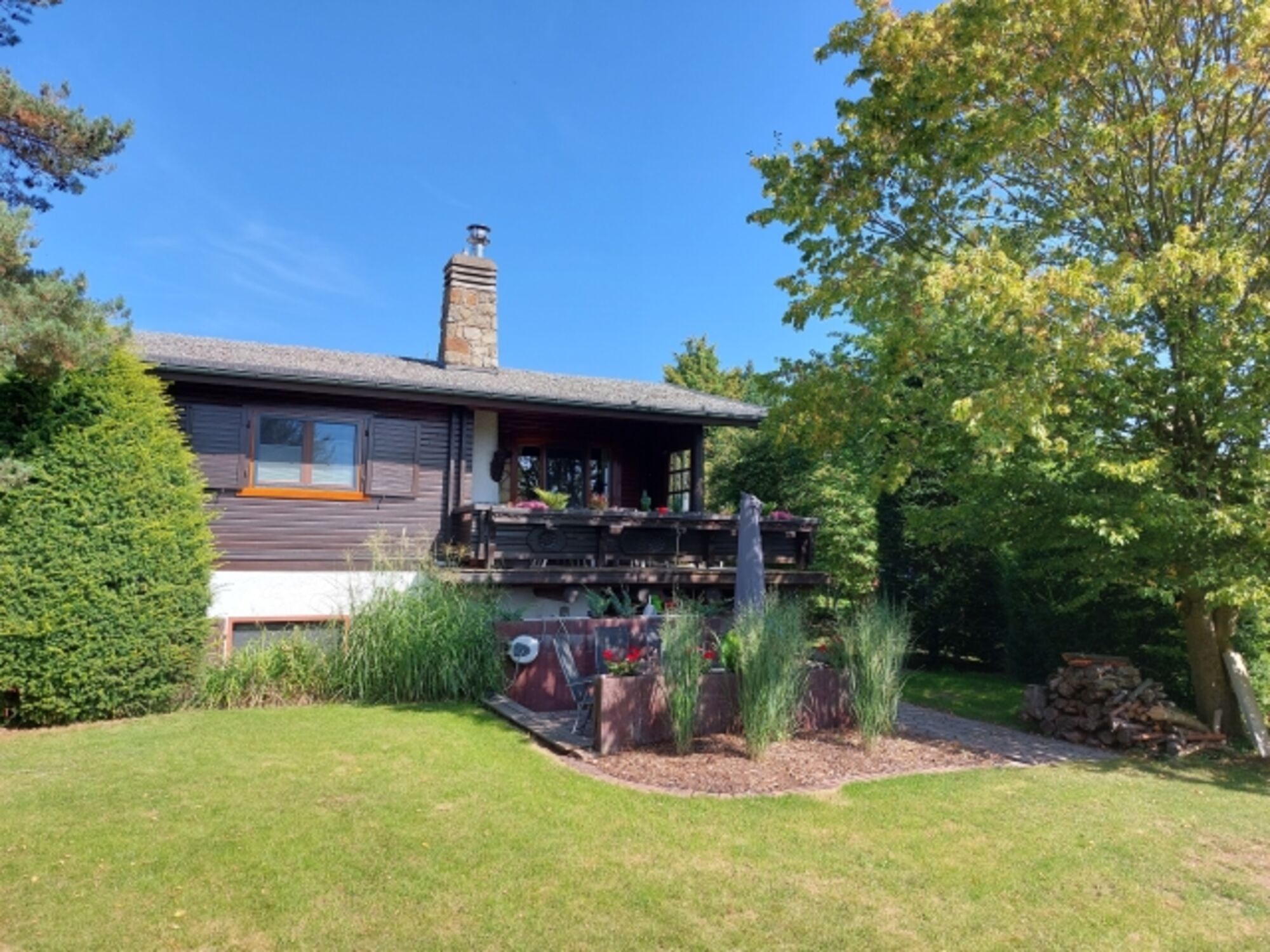 Im „Biberbau“ (Souterrain) befinden sich ein großer Wohnraum, ein Schlafzimmer, eine neue EBK und ein neues Badezimmer mit ebenerdiger Dusche sowie Dusch-WC. Im Garten befindet sich eine Sitzgelegenheit für 8 Personen.