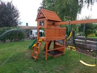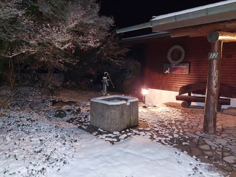 Das „Biberchalet“ (Hochparterre) ist in massiver Holz-Blockbauweise aufgebaut und aufgeteilt in einen großen Wohnbereich mit Kamin, einem Schlafzimmer, einem Kinderzimmer mit Etagenbett, neuer EBK, Bad mit ebenerdiger Dusche sowie Dusch-WC und verfügt über eine Terrasse (Sitzgelegenheit für 6 Personen).