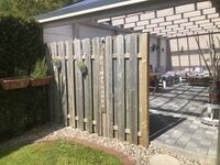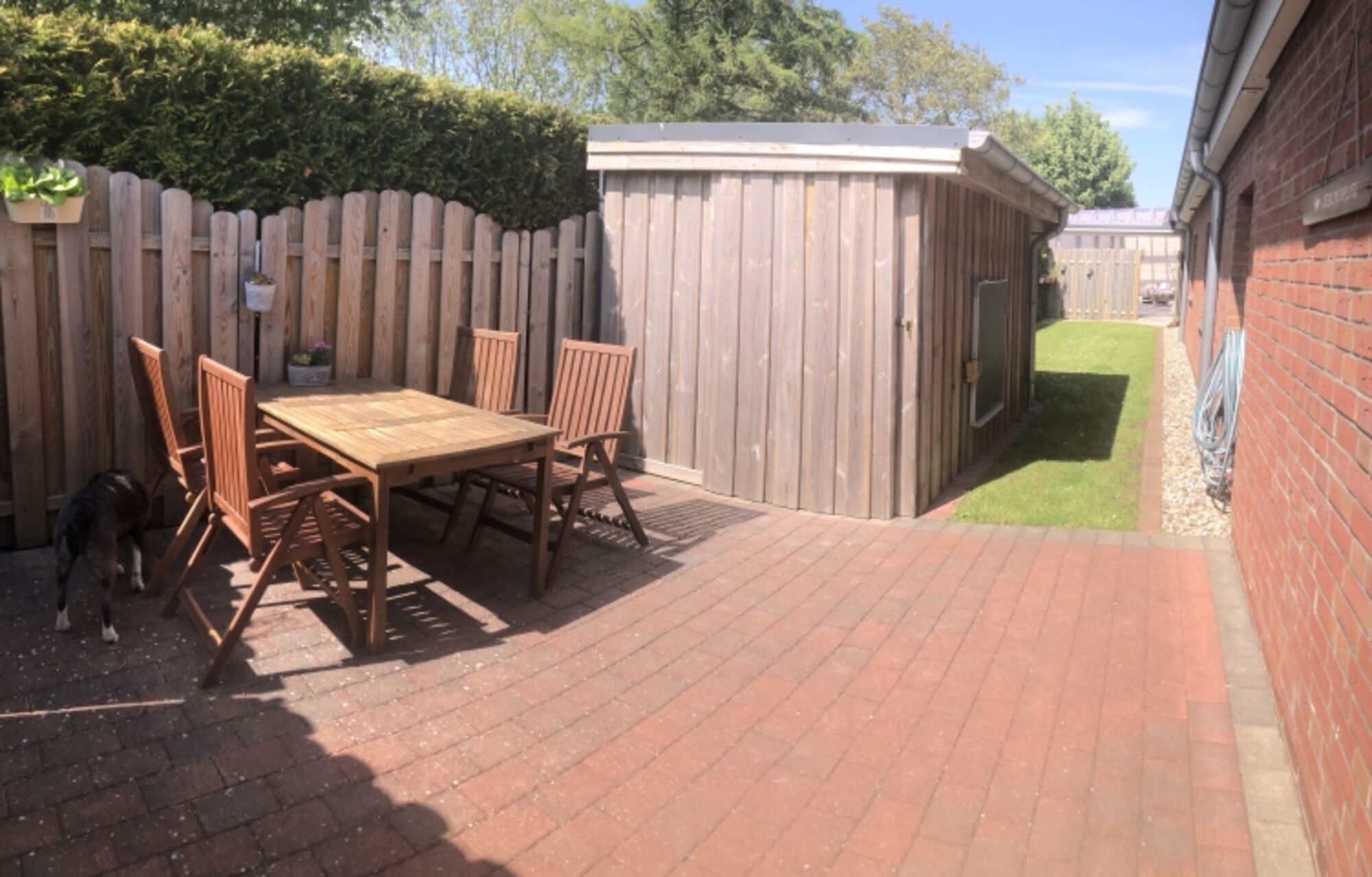 Die Wohnungen befinden sich im Dachgeschoss und sind über eine Außentreppe zu erreichen. Gemeinsamer Vorflur. Zu den Wohnungen gehören zwei Terrassen (eine überdacht) mit Gartenhütte (Einlagerung Räder möglich), Strandkorb, Gartenmöbeln, Rasenstück, Sandkiste, Spielsachen, Rutsche und Grill. Alles komplett sicher eingezäunt.