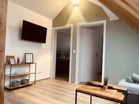 * Wohnzimmer mit Smart TV: Der einladende Wohnbereich ist der perfekte Ort zum Entspannen und Zusammensitzen.