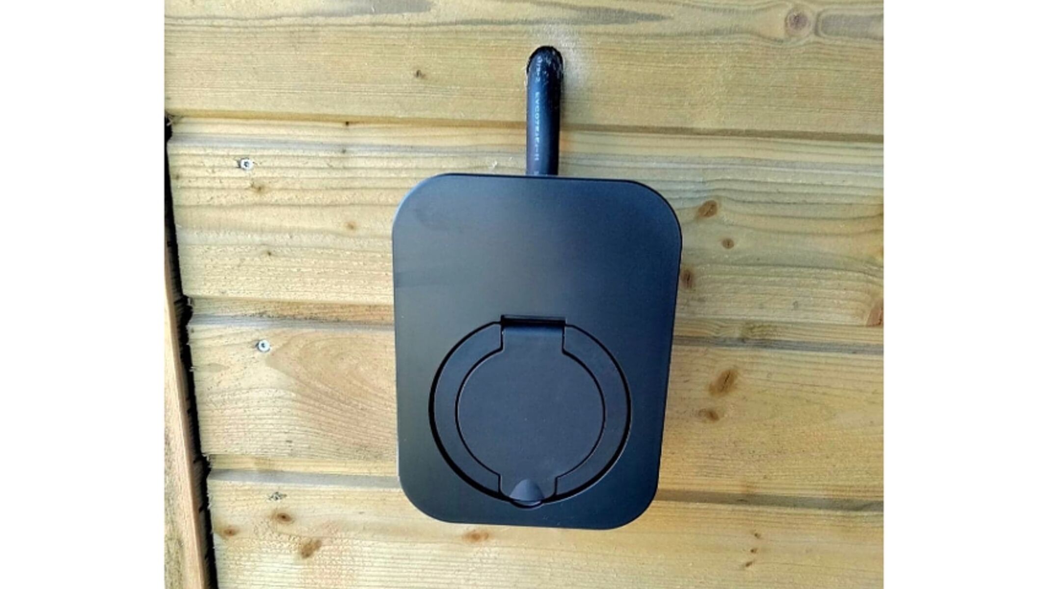 Blockhaus am Ostseestrand auf eingezäuntem Grundstück, mit E-Ladestation