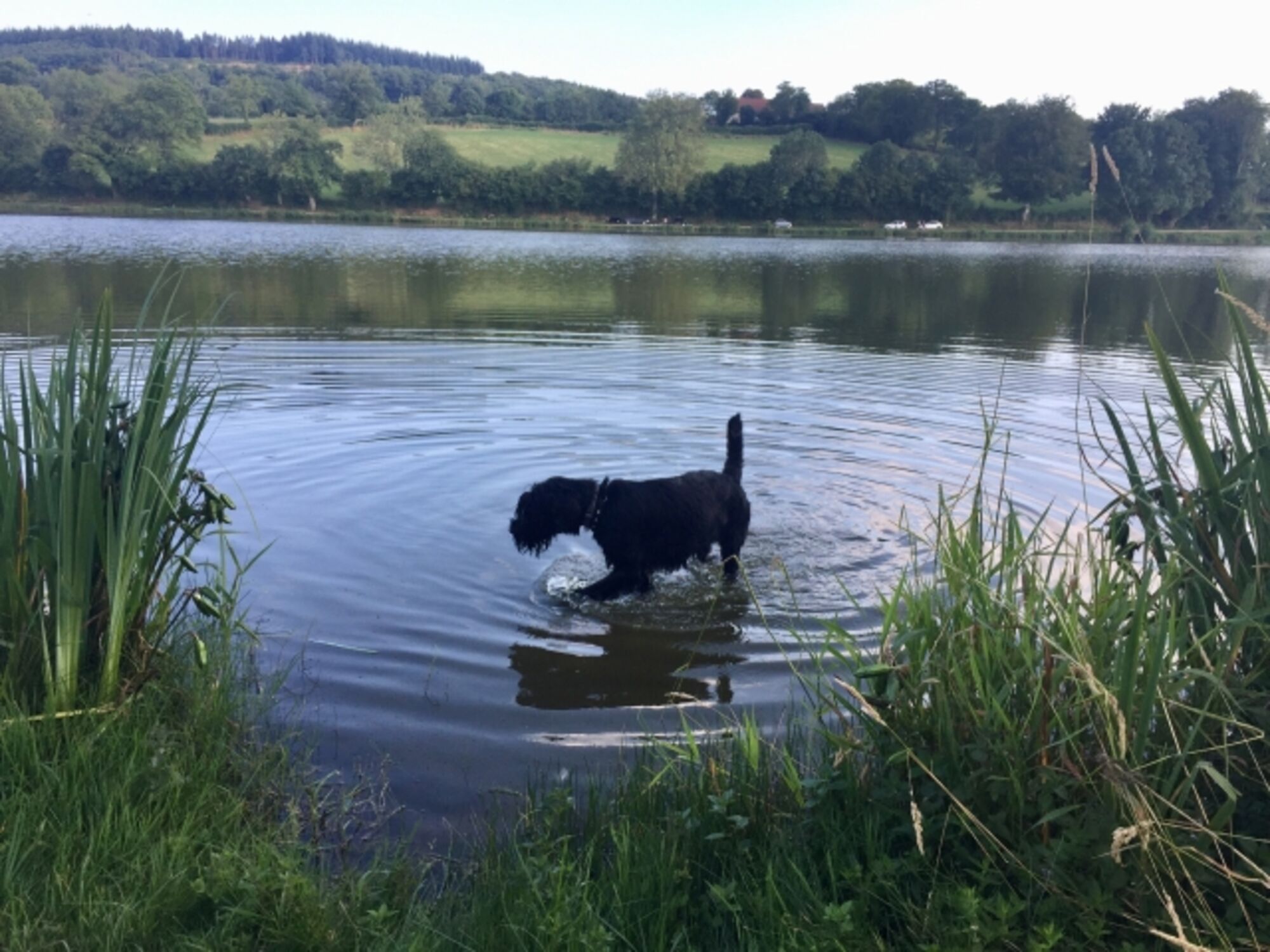 Unser Gelände ist schon toll, um sich mit den Hunden zu vergnügen. Zwei eingezäunten Wiesen und ein Spazierweg für die kleine Morgen oder Abendrunde. Das absolute Highlight ist der See, fünf Minuten zu Fuss, wunderschön gelegen und mit 40 Minuten schon ein ordentlicher Spaziergang. Hunde dürfen hier baden, Menschen müssten 10 Minuten Auto fahren.