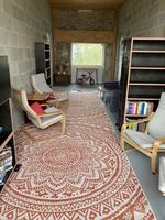 Durch die grosszügige Bibliothek gelangen Sie zu ihrer Wohnung Tartasse. Schon hier haben Sie haken, wo Leinen und Hundehandtücher gut Platz finden. Sie liegt irgendwie Parterre und irgendwie im ersten Stock. Das hängt mit der Landschaft zusammen. Es gibt einige flache Stufen vor dem Haus und im Eingangsbereich der Wohnung. Die Wohnung Tartasse ist sehr grosszügig und viele Menschen und Hunde haben locker Platz. Daher ist sie ausgelegt für 5 Personen, die sich im Wohnzimmer auf 2 Sofas und einen Sessel verteilen. Tartasse hat eine neue Heizung und im Sommer eine Klimaanlage.
