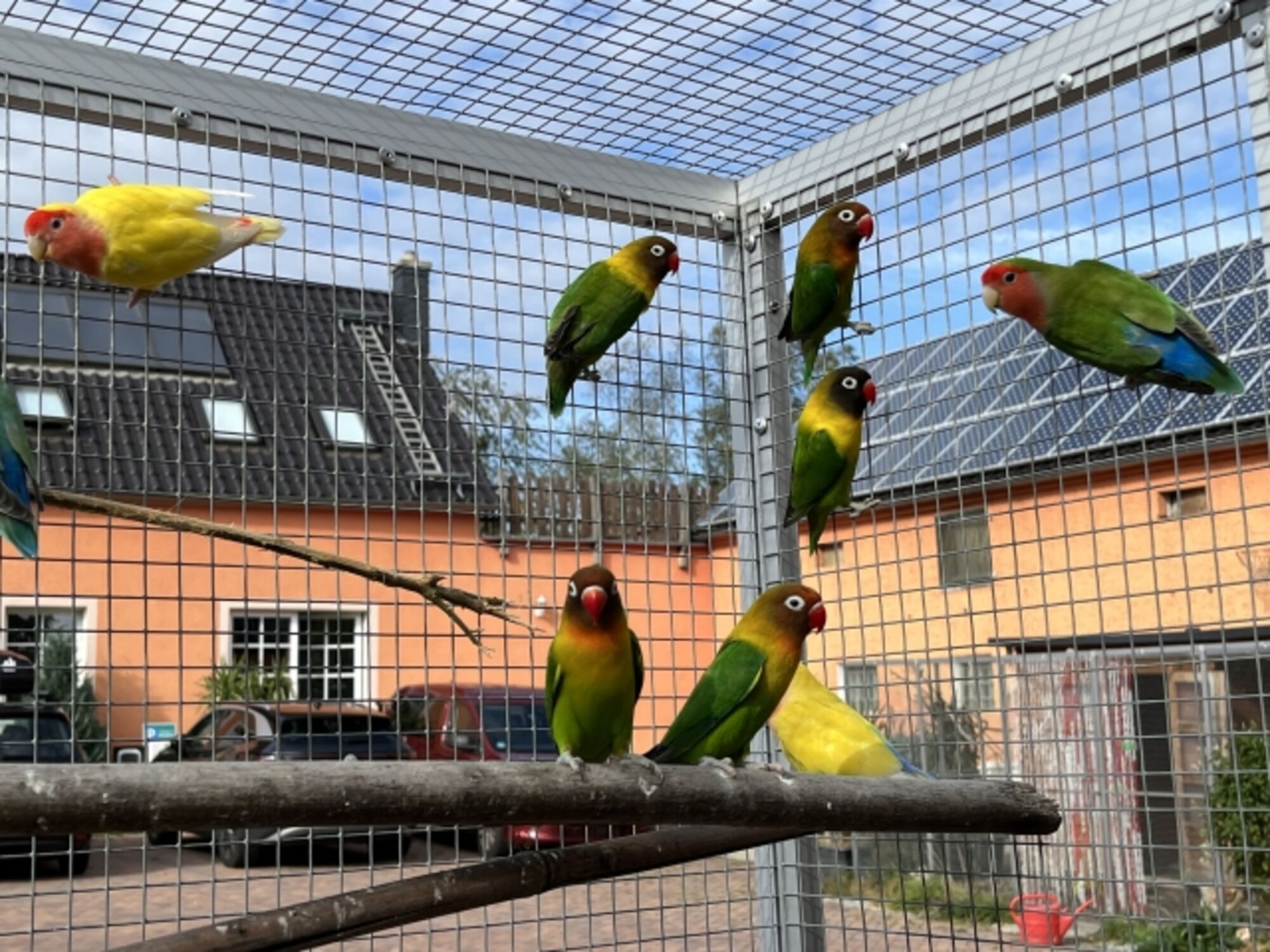 Die Fewo "Gefiederte Freunde" gehört zum Gästehaus des Thürmer-Hofs und hat nicht nur einen Blick ins Grüne sondern auch zu unseren gefiederten Freunden: Hühner auf der einen Seite und mehrere Volieren (Show-Girls, Wellensittiche, Mönchssittiche, Agaporniden ...) auf der anderen Seite im Hof. Mehrere, auch große Hunde sind bei uns herzlich willkommen, können auf einer großen, umzäunten Wiese herumtollen und reisen kostenlos mit.