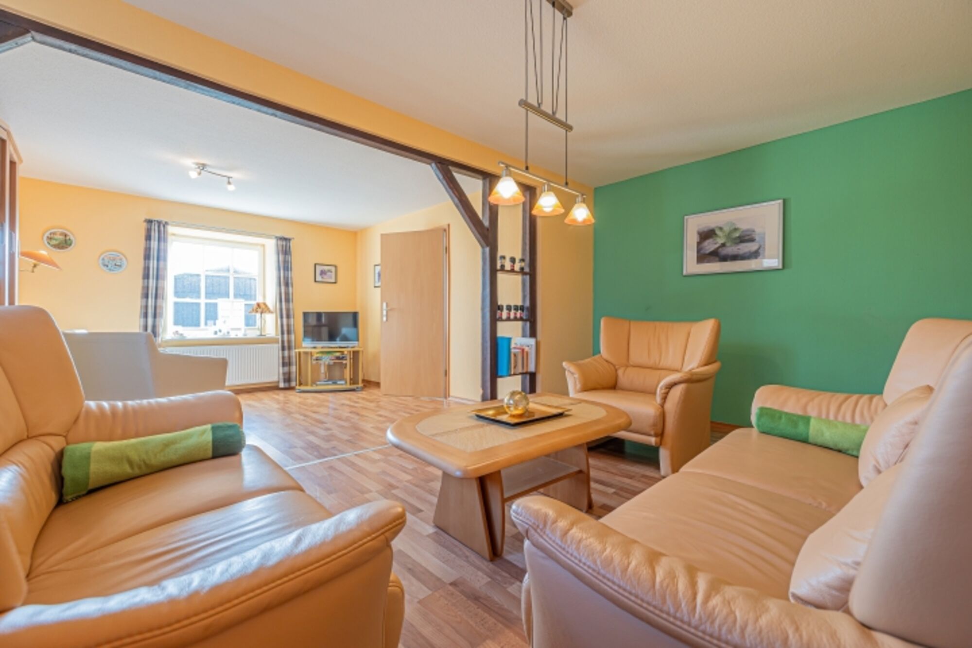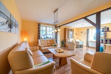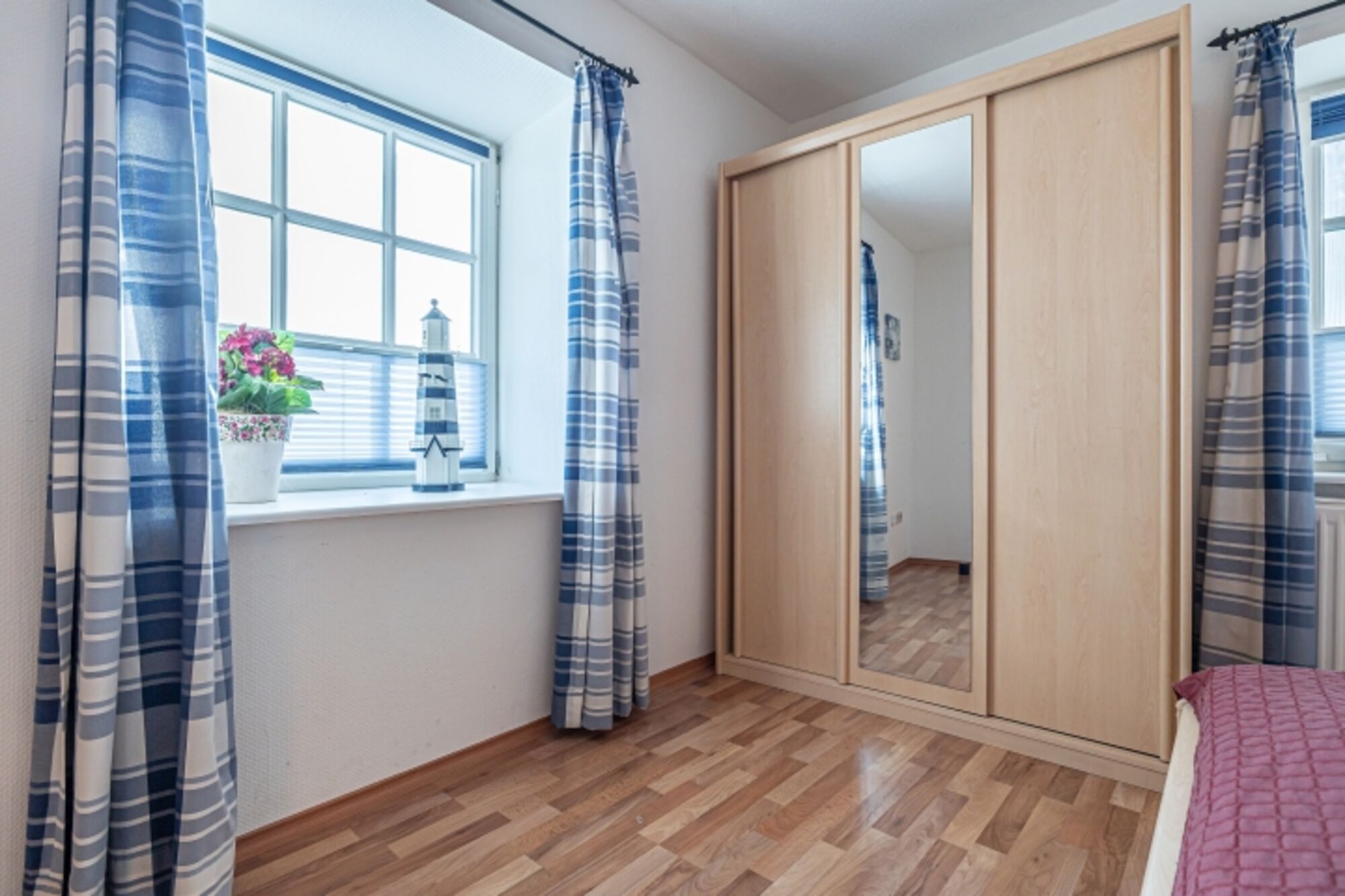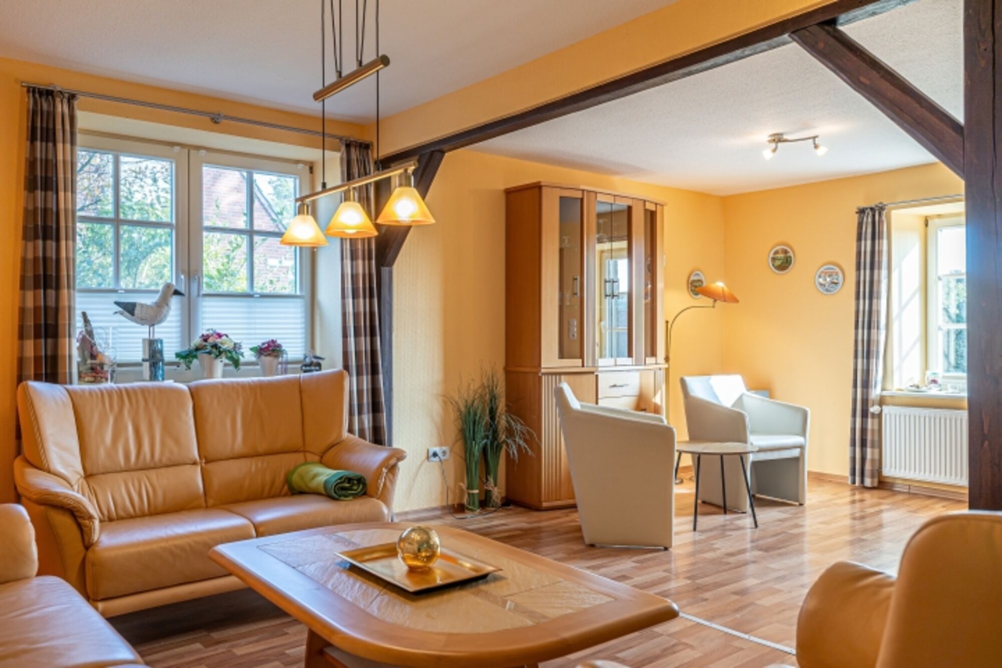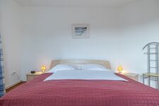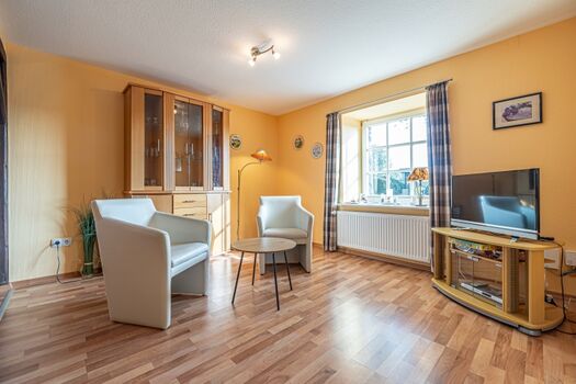 Im hellen Schlafzimmer befindet sich das Doppelbett (180 x 200 cm). Für einen dritten Gast richten wir Ihnen auf Wunsch gerne das Zustellbett (90 x 200 cm) her. Das farbenfrohe Wohnzimmer mit seinen rustikalen Dachbalken ist mit einer Couchgarnitur und einem SAT-TV ausgestattet. Wie wär’s, sich jetzt einfach mit dem Küstenkrimi auf die Couch einzukuscheln und den Alltag auszuknipsen?