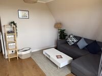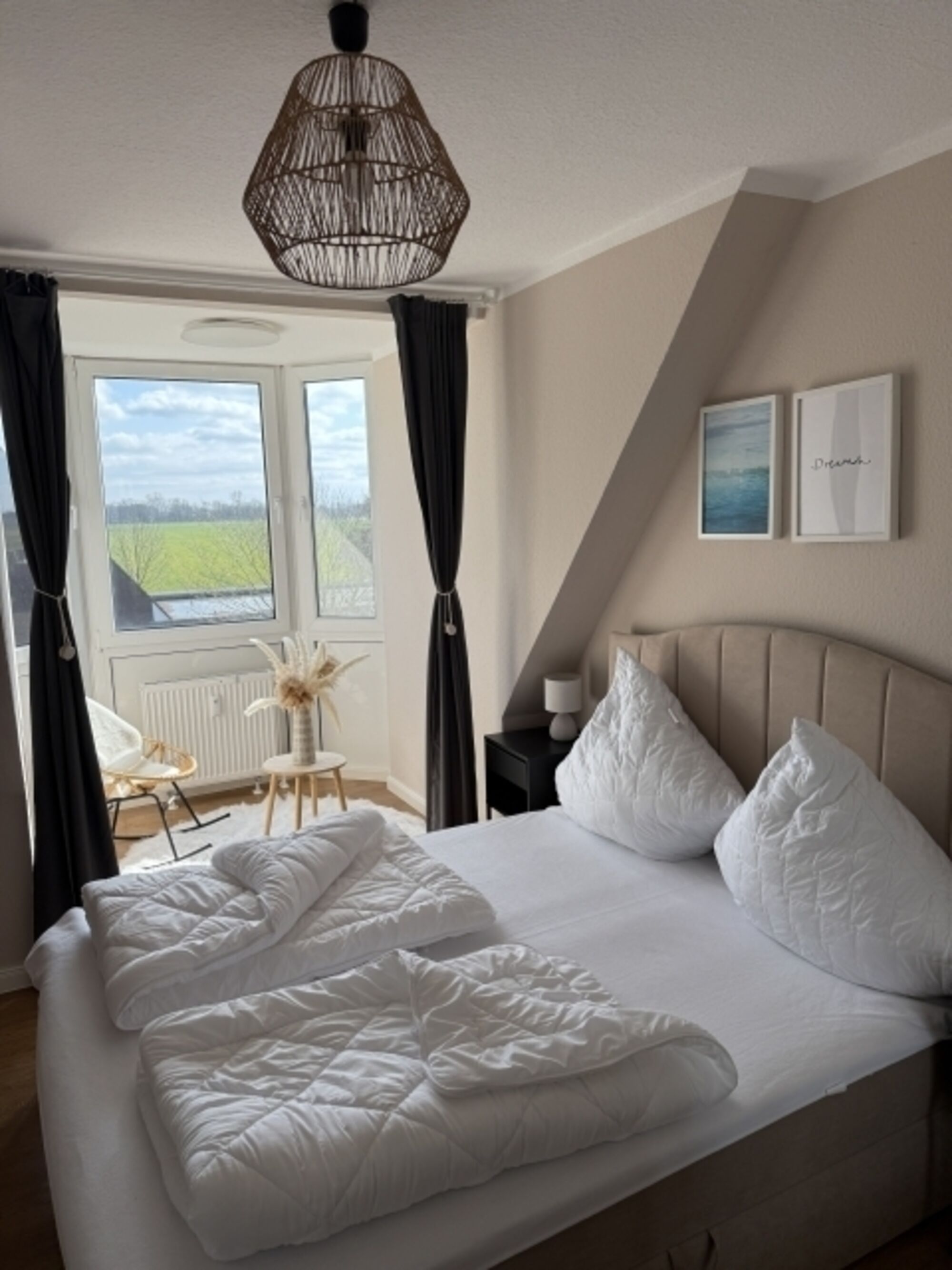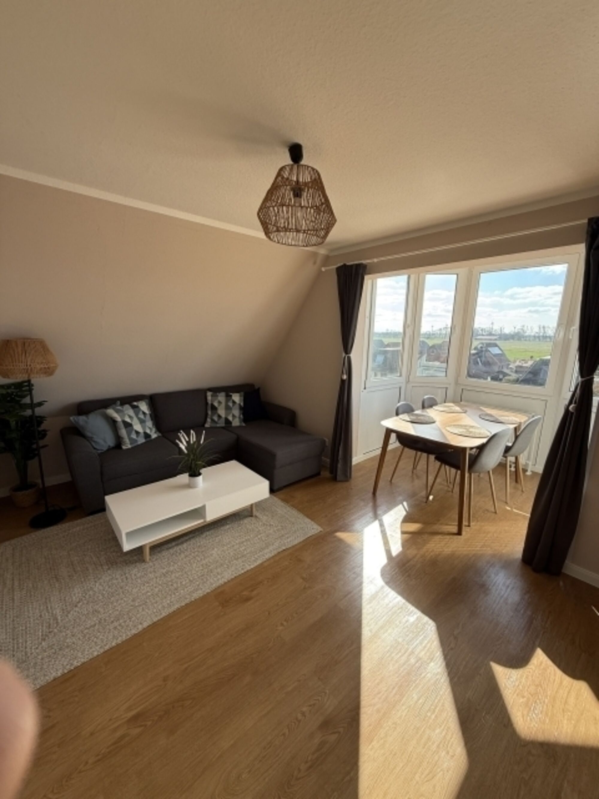 Die gemütliche 46 qm große Ferienwohnung Küstenjunge Flut liegt im zweiten Stock und empfängt euch mit lichtdurchfluteten Räumen, liebevollen Details und einem klaren Versprechen: Hier könnt ihr euch treiben lassen, zur Ruhe kommen – und dabei die Zeit mit eurem Hund in vollen Zügen genießen.