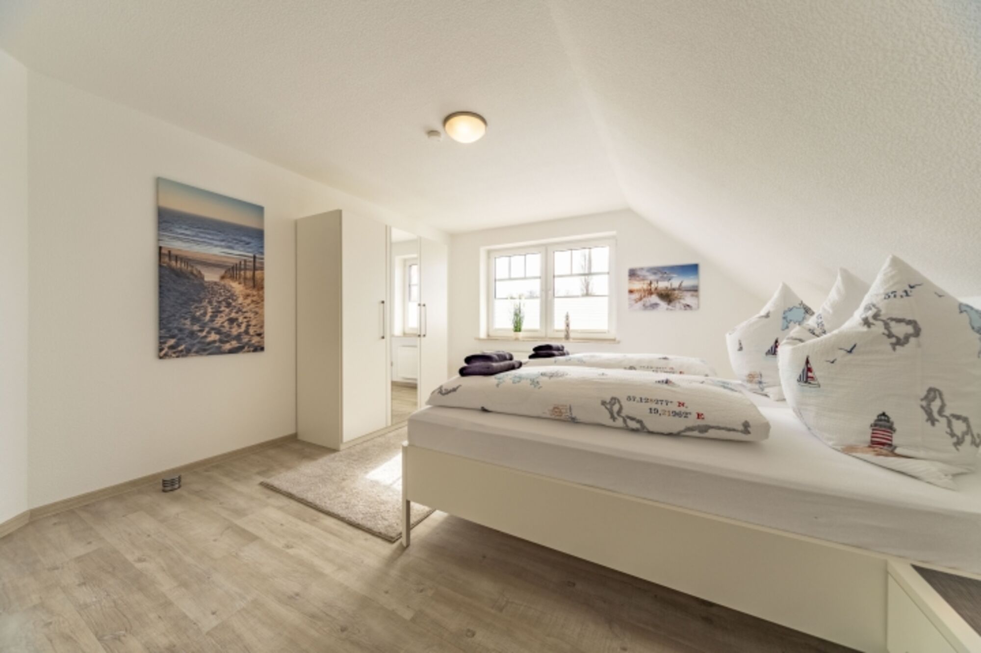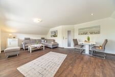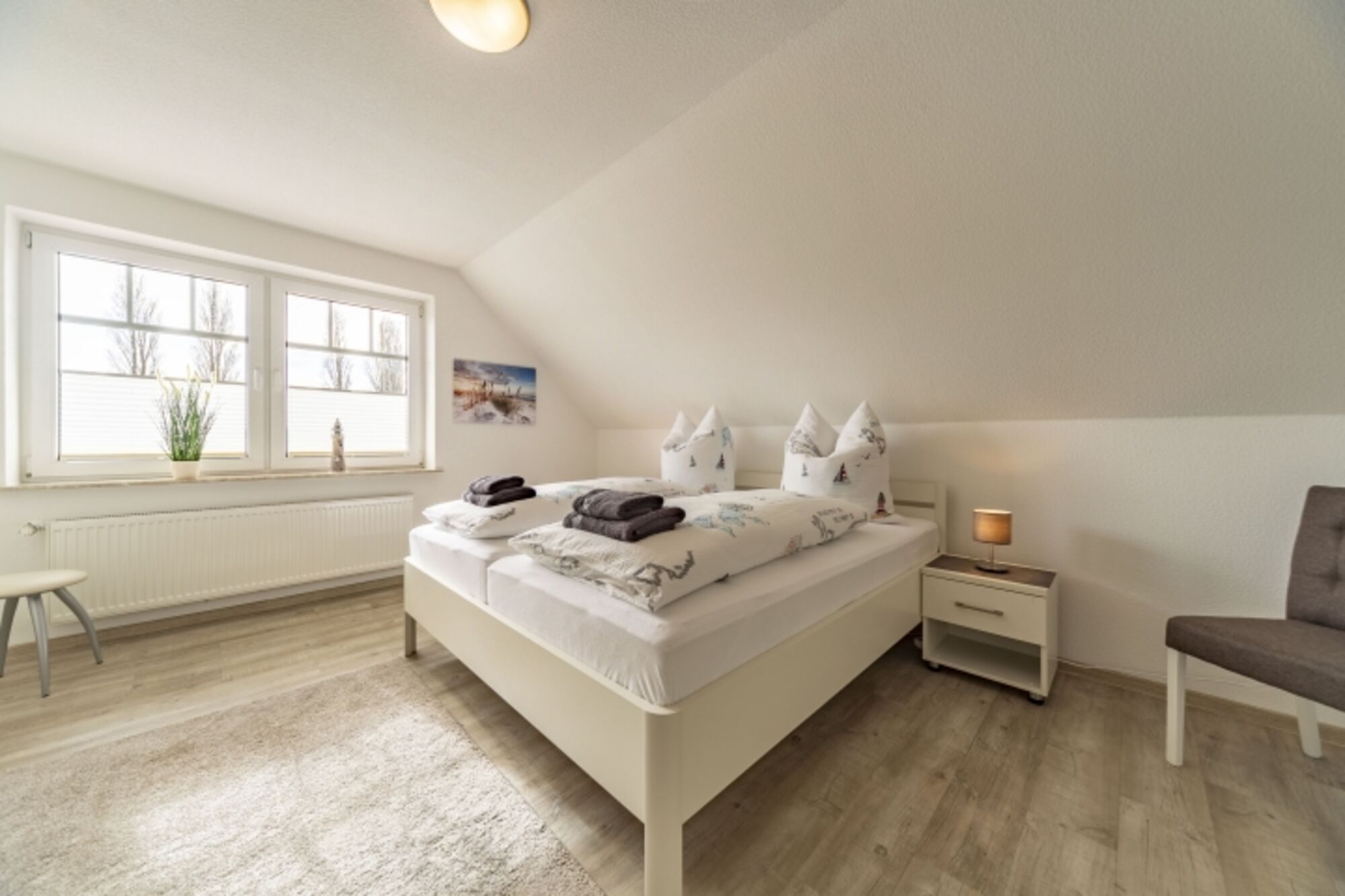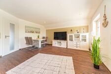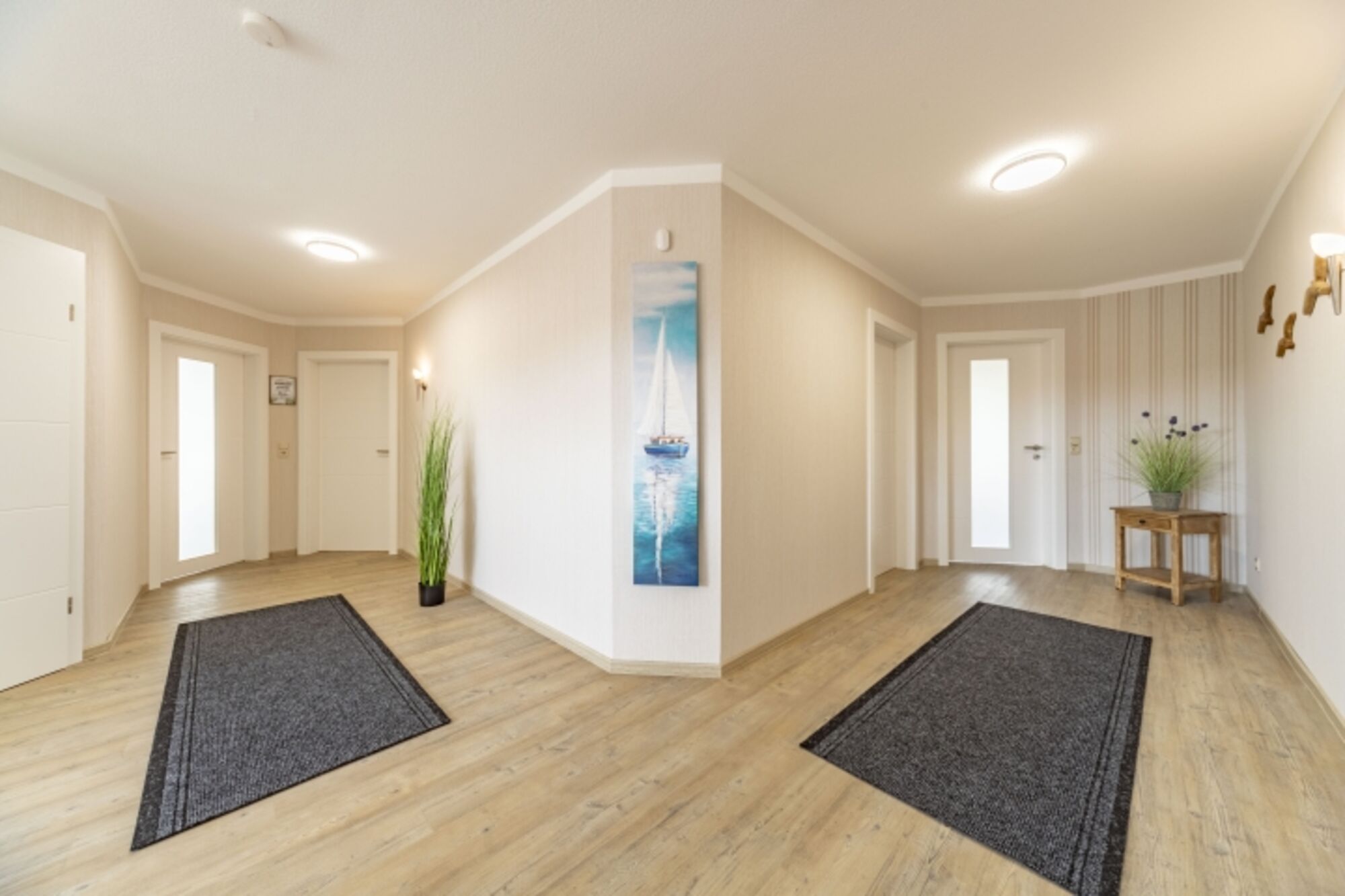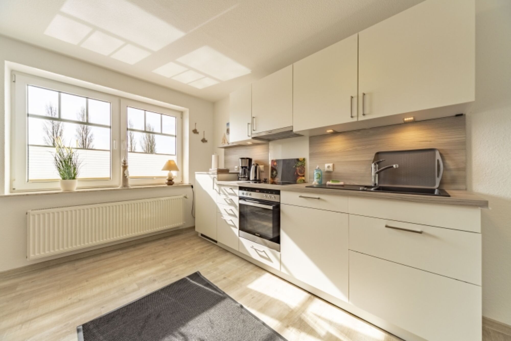Die Wohnung "Friesenanker oben" verfügt über 2 gesonderte Schlafzimmer, eine getrennte Küche mit Essbereich, diese ist voll ausgestattet. Die Wohnung verfügt über ein modernes Badezimmer mit WC. Ein großer Flur sowie ein gemütliches Wohnzimmer mit zusätzlicher Ess-Ecke für gemeinschaftliche Abende sind ebenfalls vorhanden. Vom Wohnzimmer aus gelangen Sie ebenfalls auf die möblierte Loggia. - Diese steht Ihnen ebenfalls wie die Terrasse im Auslaufbereich zur alleinigen Verfügung.